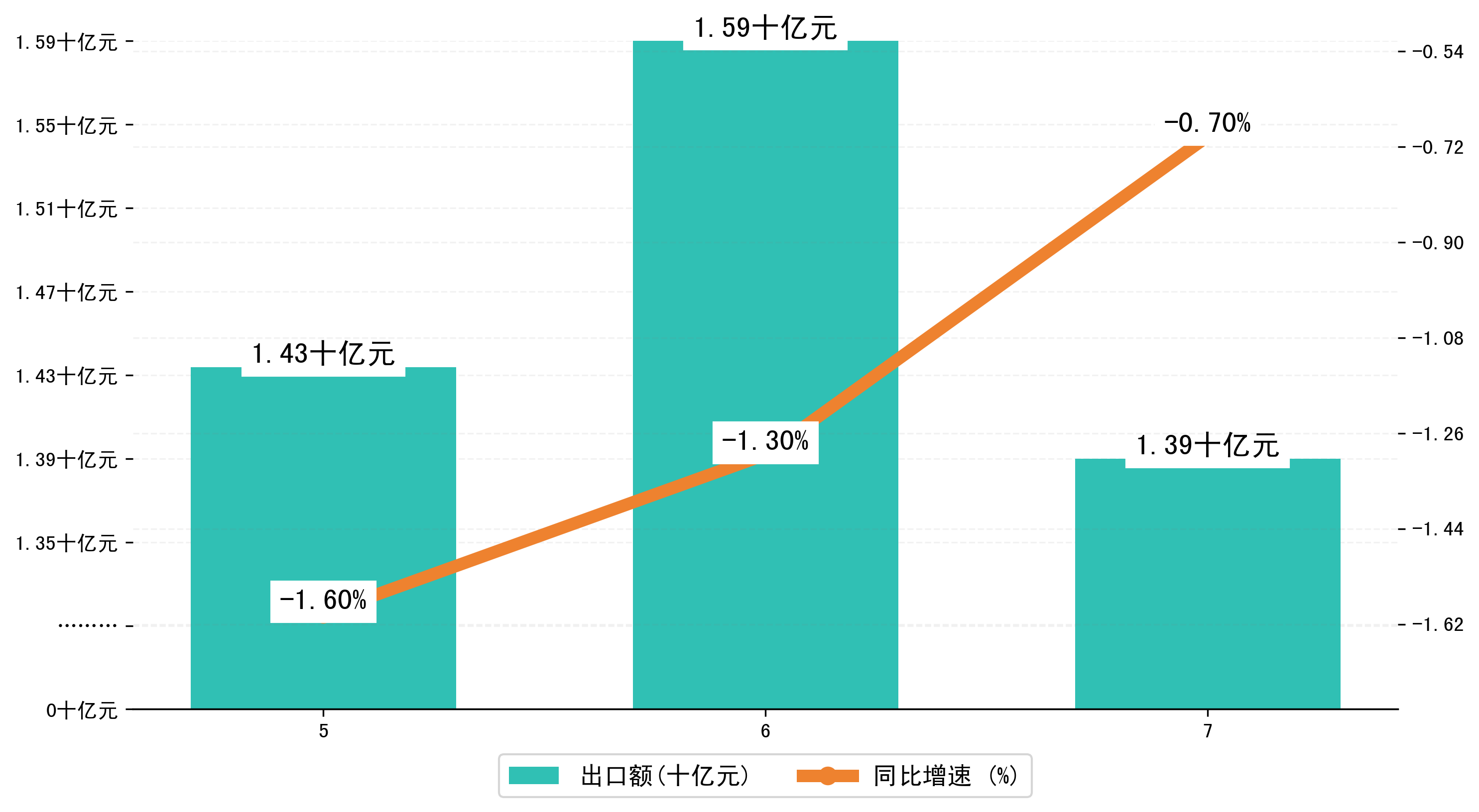 一、2024年7月鞍山市单月出口总额及进出口差额统计分析