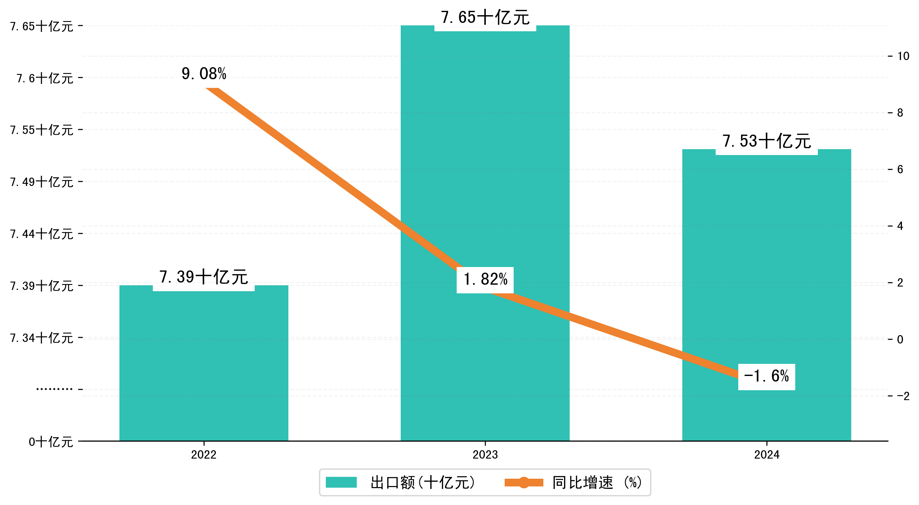 以人民币计,2024年1-5月鞍山市出口额为75,2623.0367万元,相比上年同期减少了1,2253.1685万元,同比减少了-1.60%。