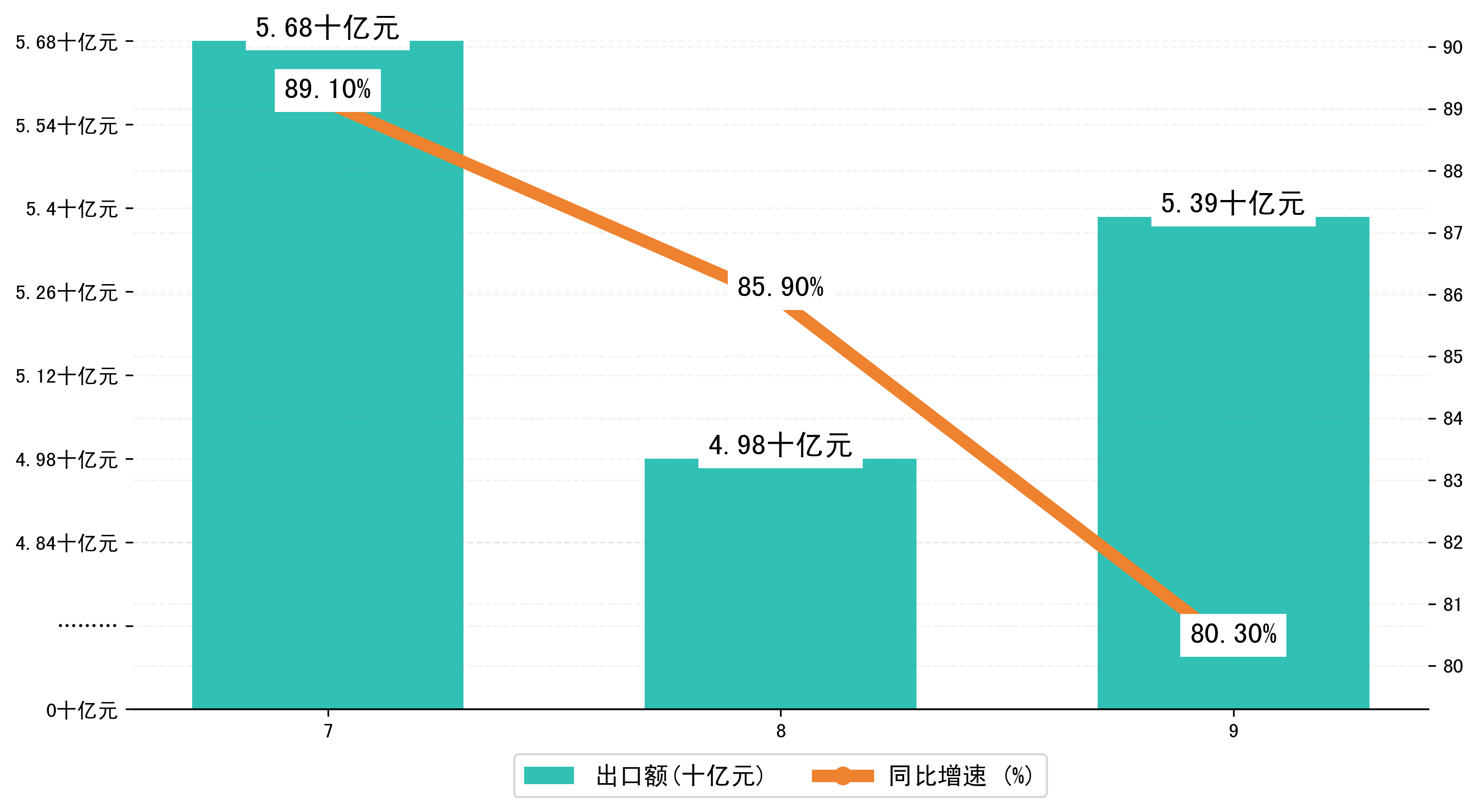 以人民币计,2023年1-9月保定市出口额为490,9139.5427万元,相比上年同期增加了218,6478.0128万元,同比增加了80.30%。