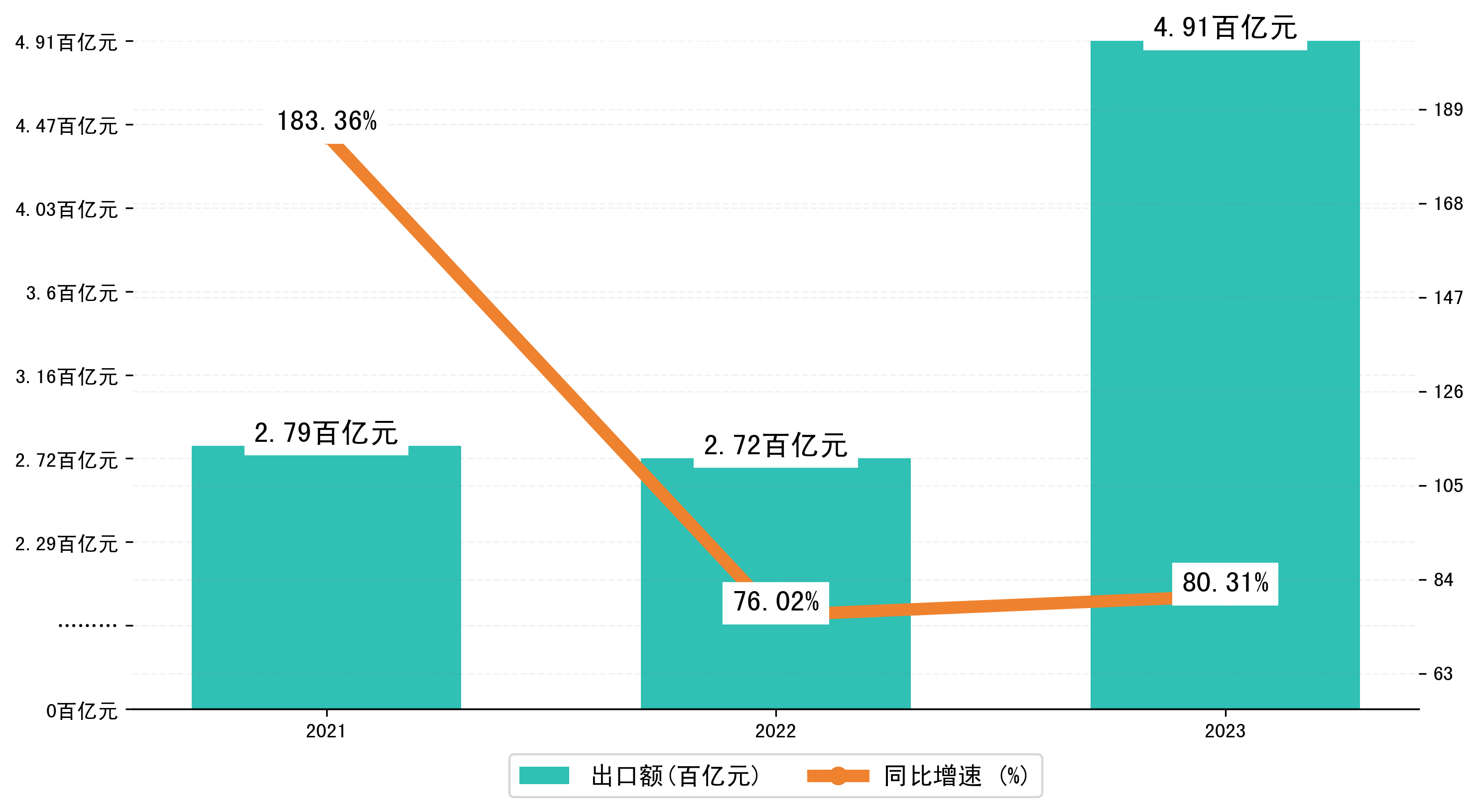 以美元计,2023年1-9月保定市出口额为70,1818.9459万美元,相比上年同期增加了28,5823.2641万美元,同比增加68.70%。