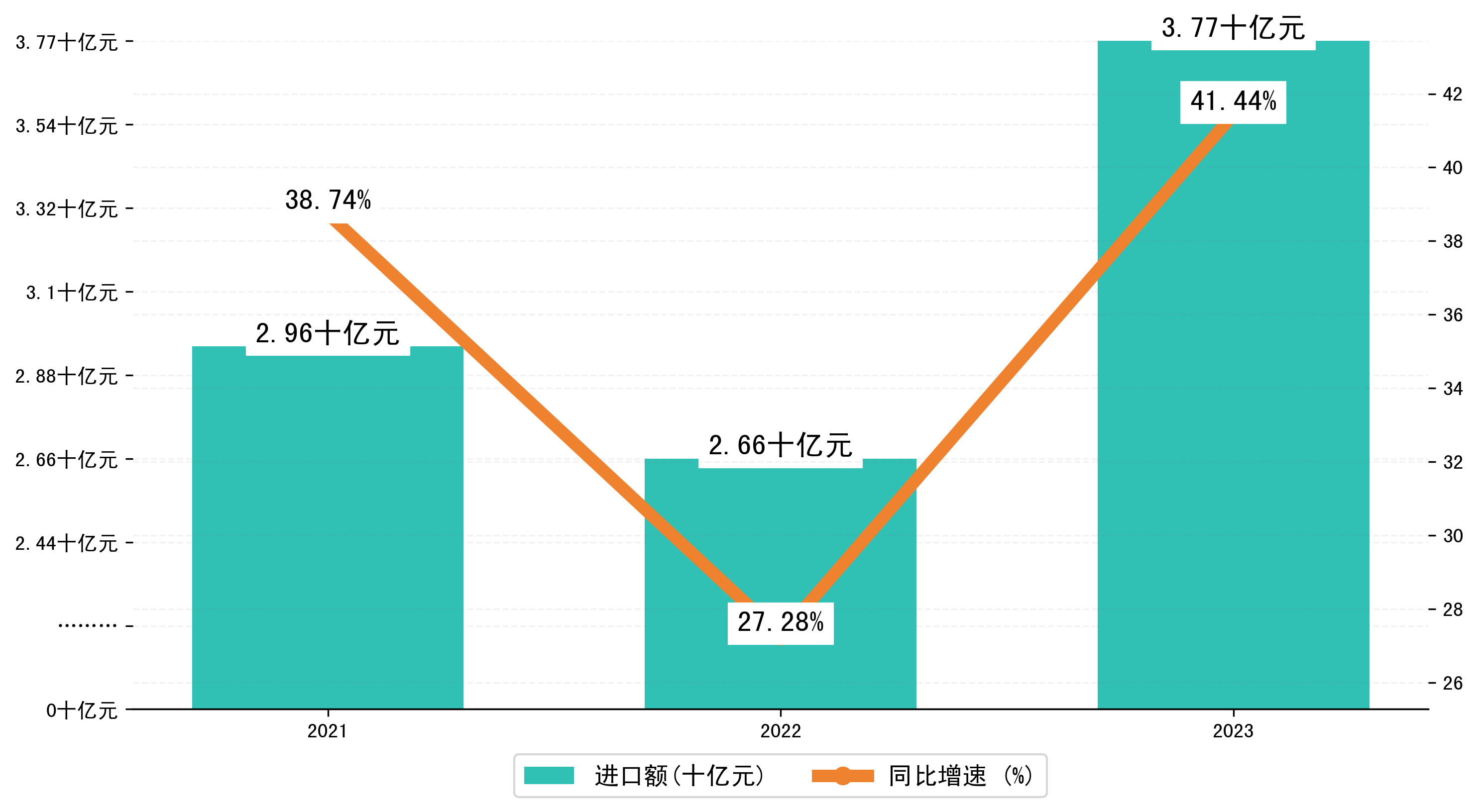 以人民币计,2023年1-9月保定市进口额为37,6536.2966万元,相比上年同期增加了11,0322.2883万元,同比增加了41.40%。