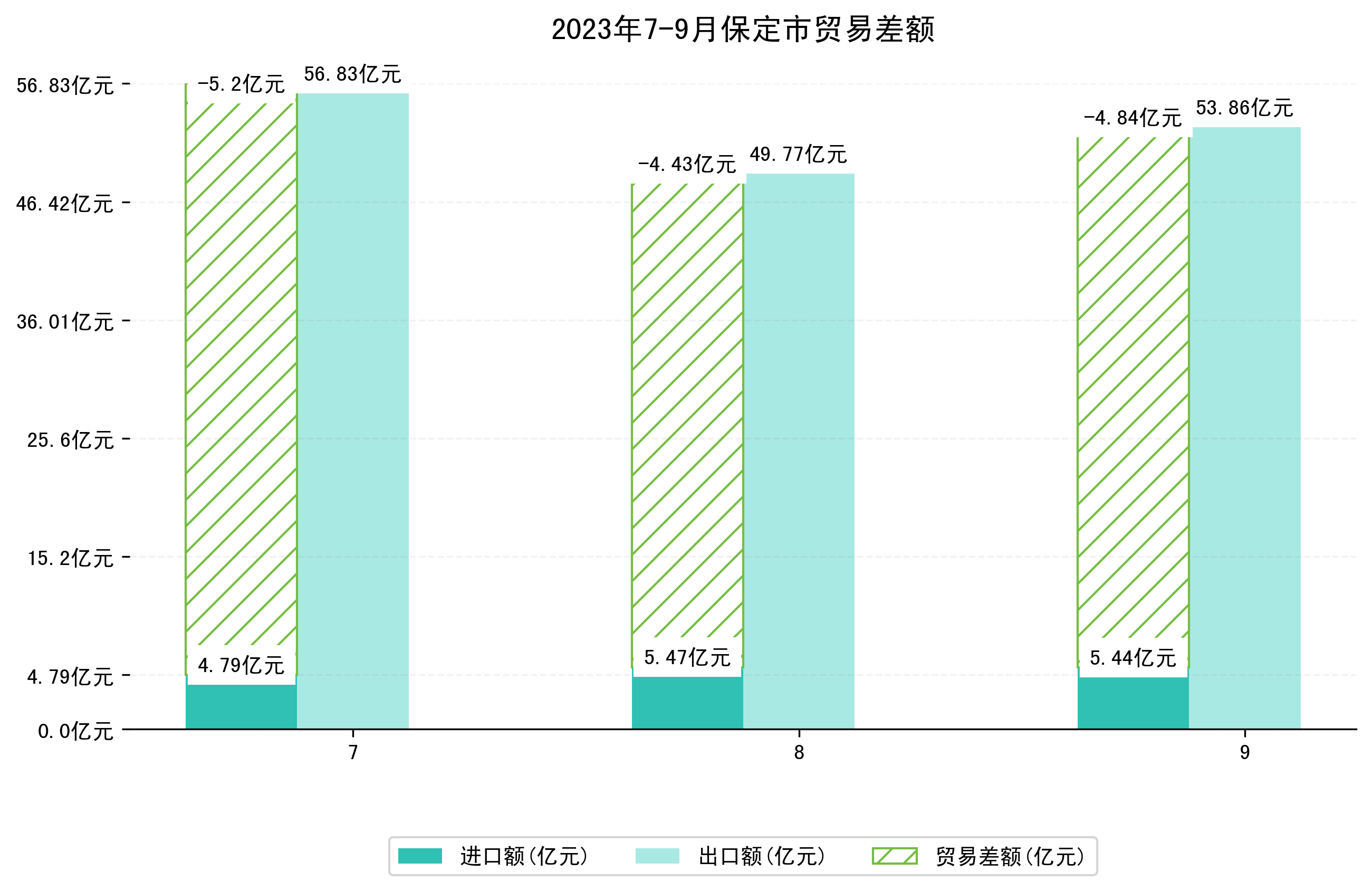 一、2023年9月保定市单月出口总额及进出口差额统计分析