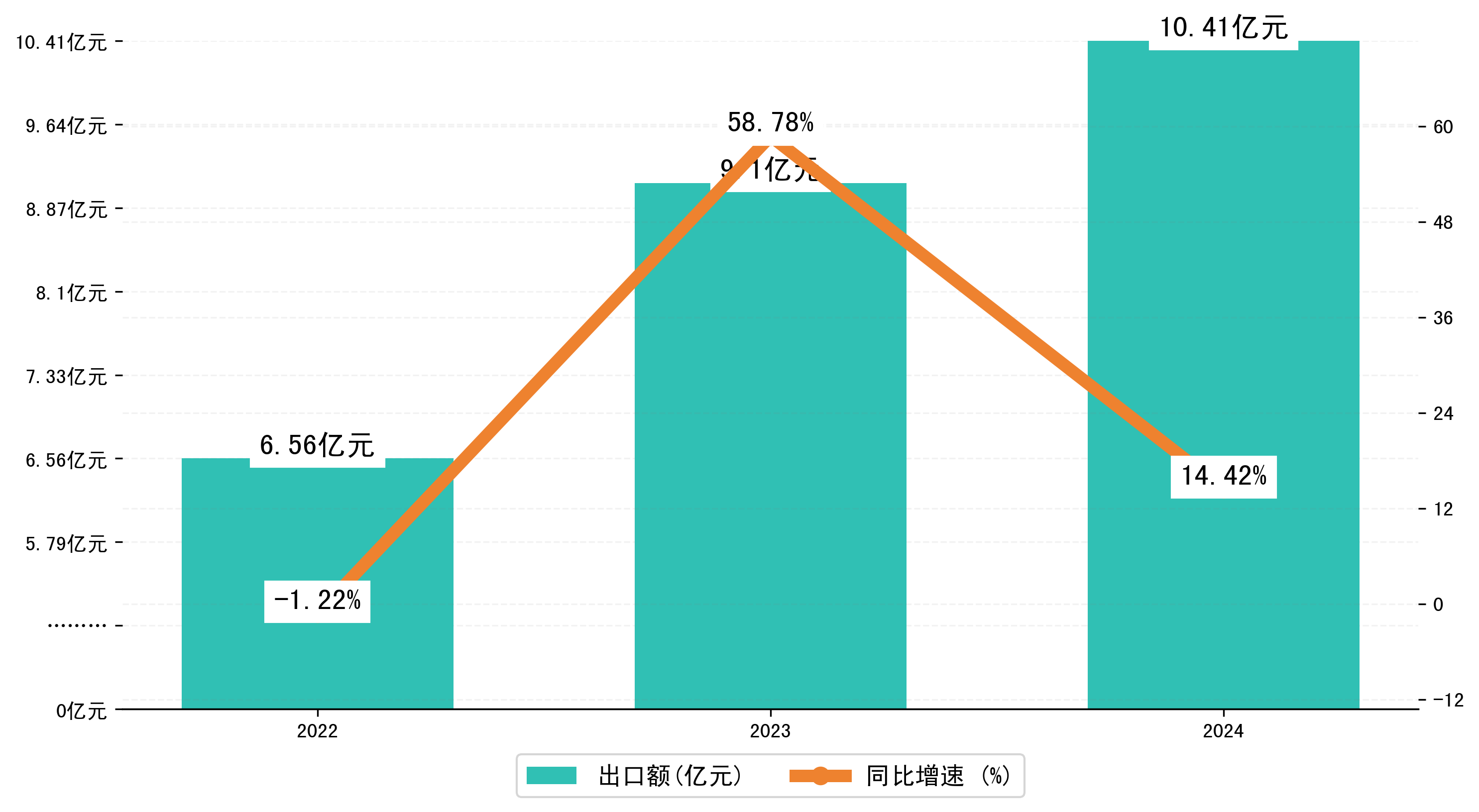 以人民币计,2024年1-1月北海市出口额为10,4147.0084万元,相比上年同期增加了1,3124.9328万元,同比增加了39.00%。