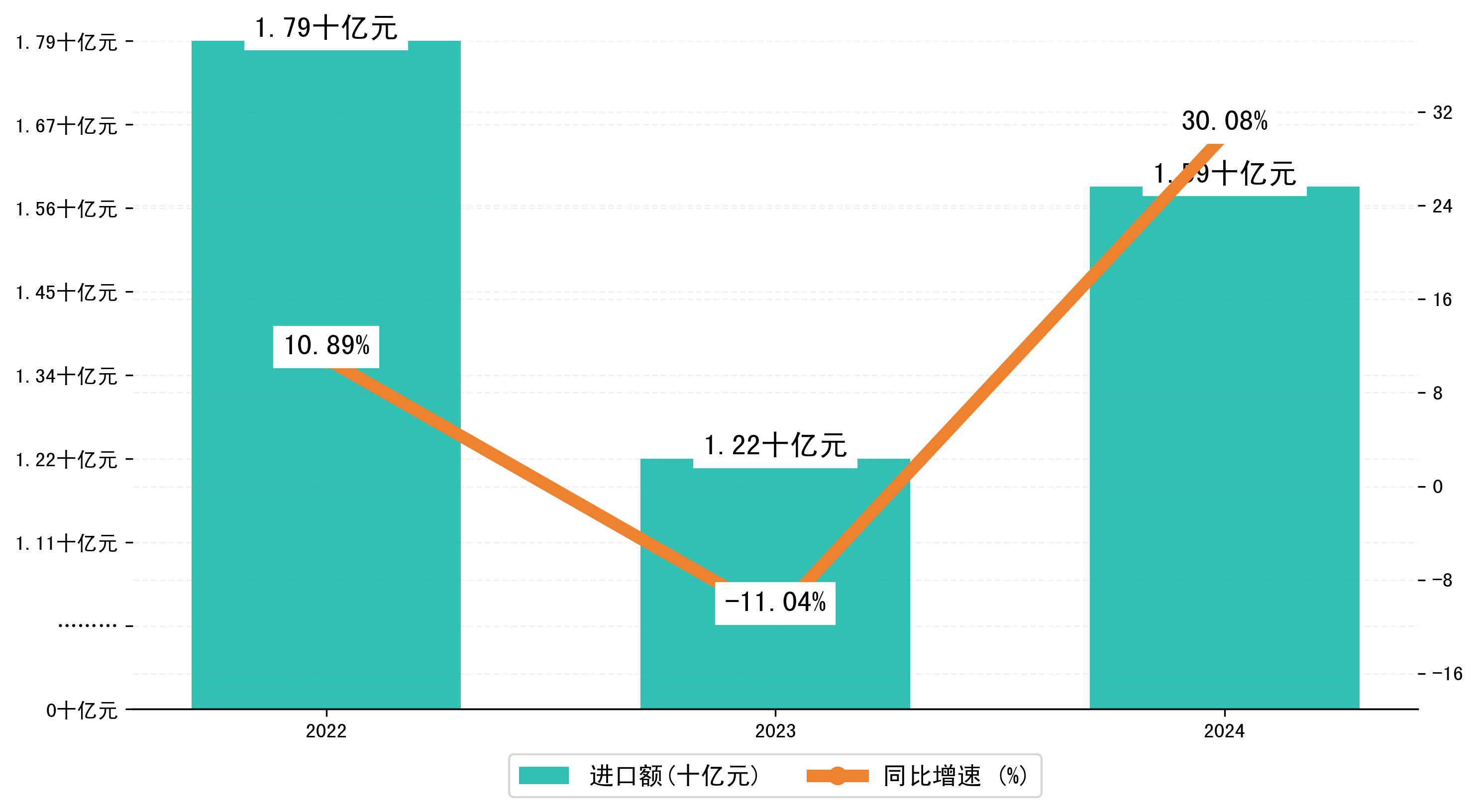 以美元计,2024年1月北海市进口额为2,2286.0084万美元,相比上月增加了3446.2498万美元;相比上年同期增加了4770.5261万美元,同比增加44.30%。