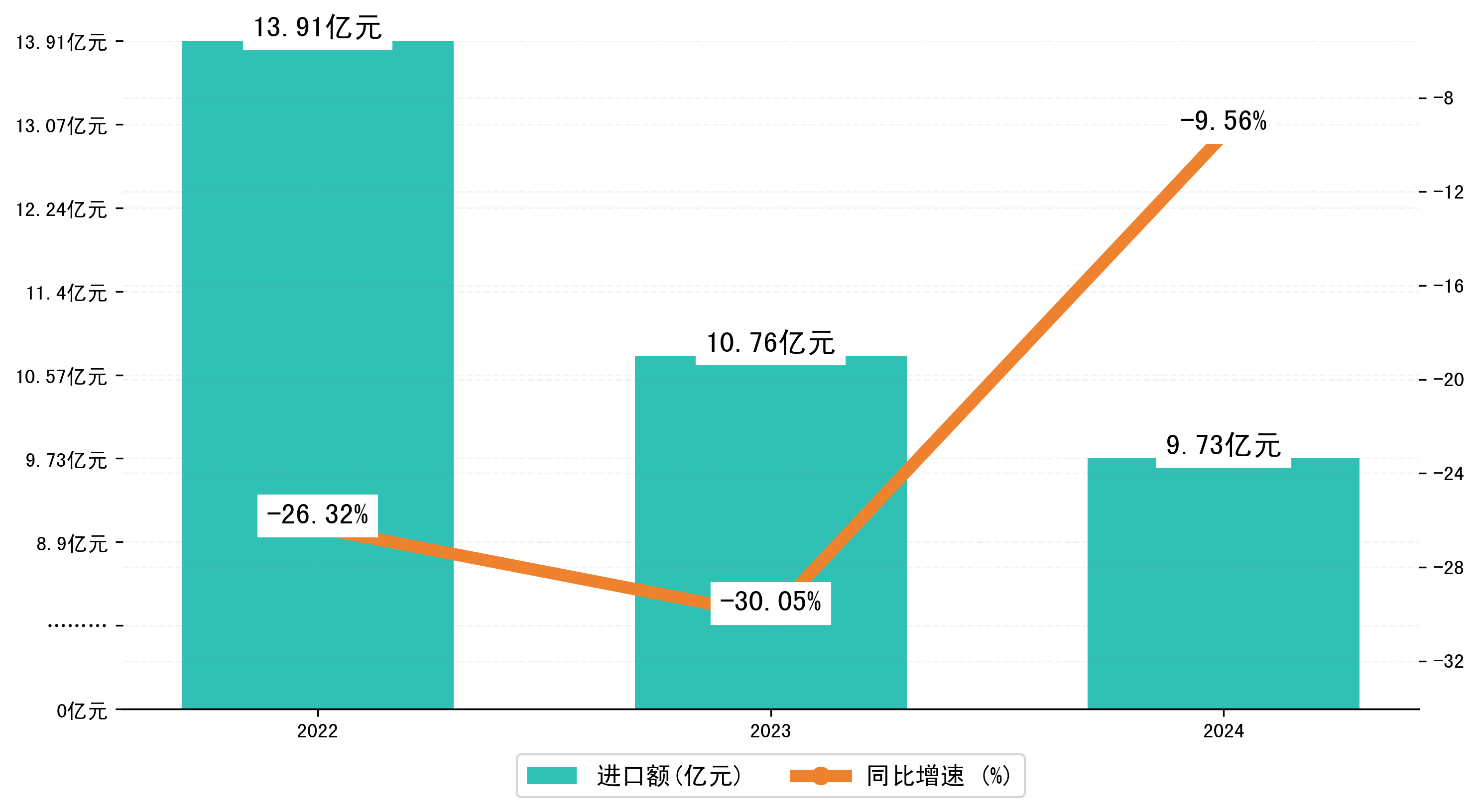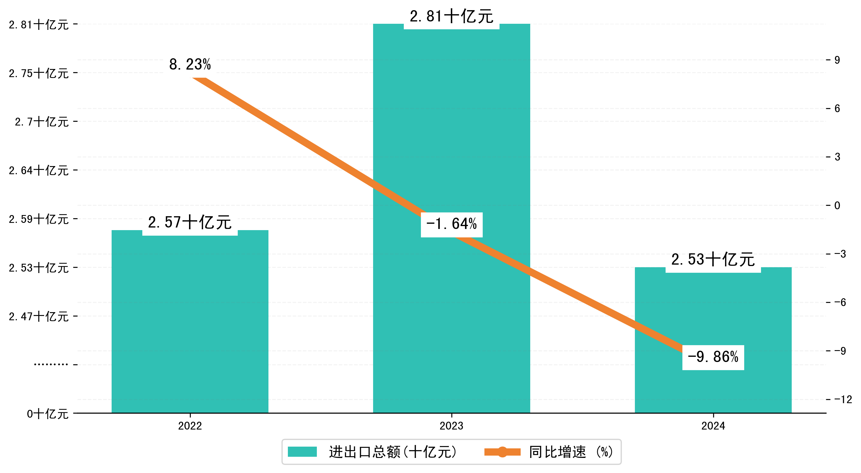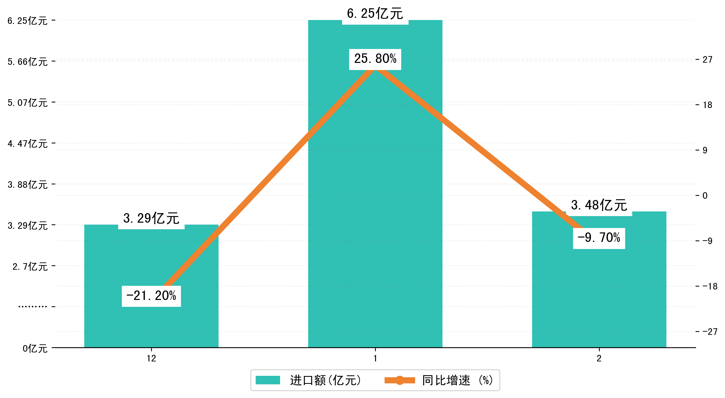 以人民币计,2024年2月蚌埠市进口额为3,4823.4491万元,相比上月减少了2,7662.8454万元;相比上年同期减少了2,3148.6278万元,同比减少了-9.70%。