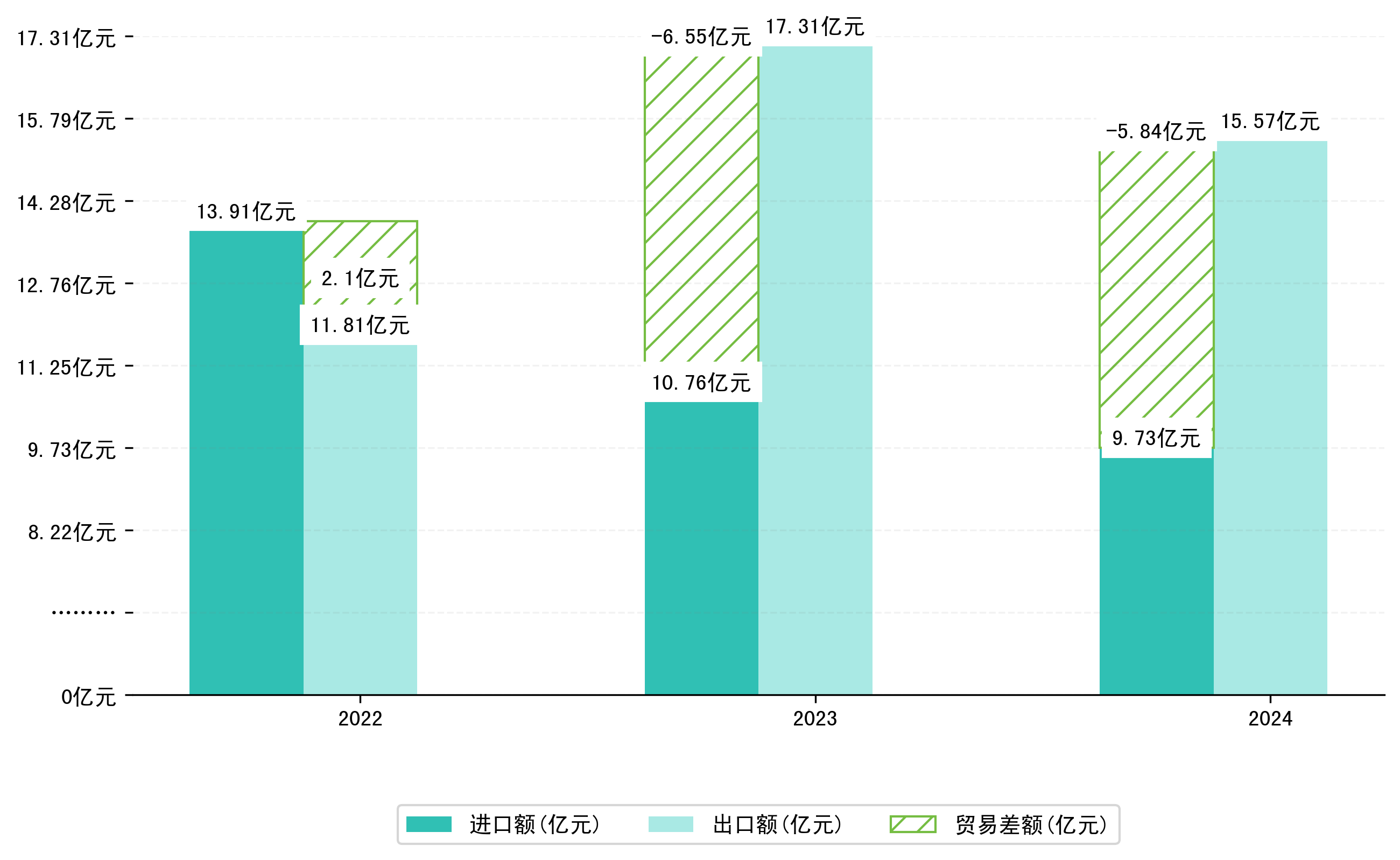 以人民币计,2024年2月蚌埠市贸易差额为1,4544,7658万元(贸易顺差),相比上月减少了2,9303,6457万元,即4059,4905万美元;相比上年同期减少了3318,6678万元,同比减少-18.58%。