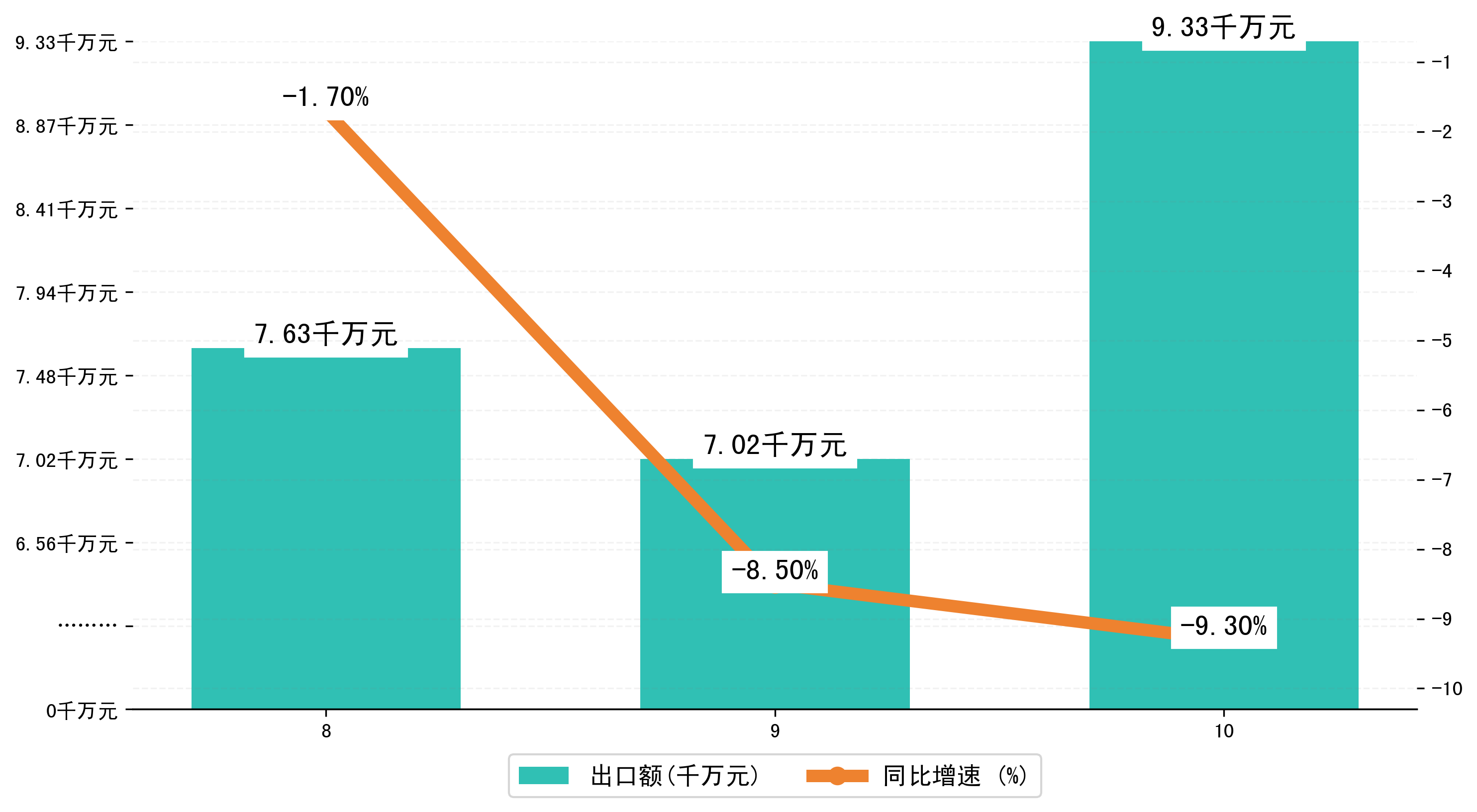 (图二:2023年8-10月长治市出口额)