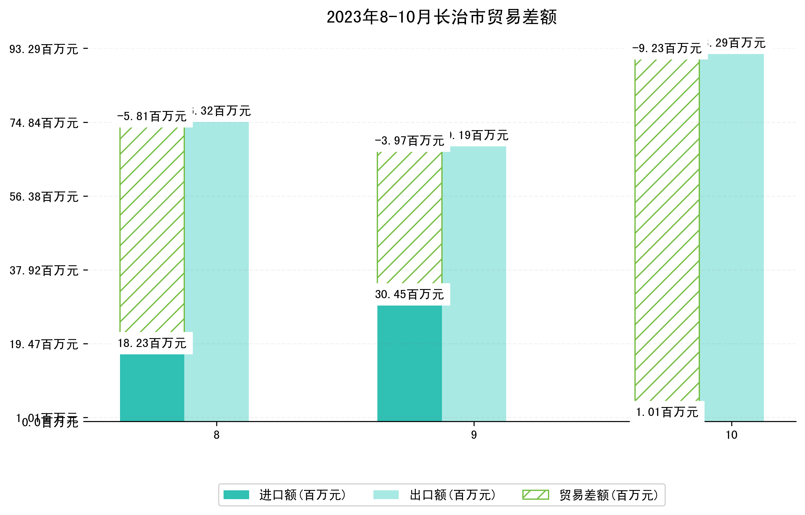 (图一:2023年8-10月长治市进出口总额)