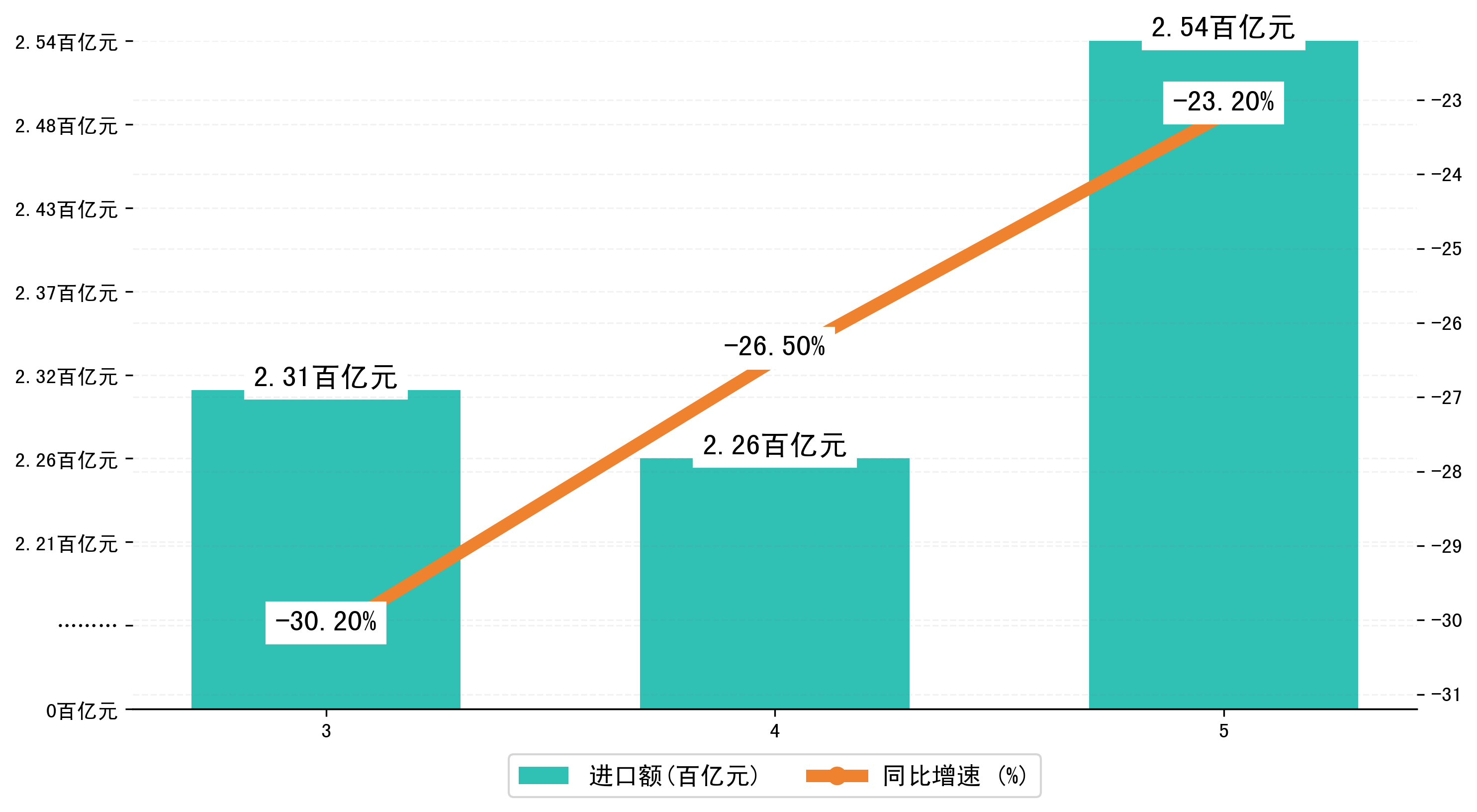 以人民币计,2023年5月成都市进口额为253,9381.039万元,相比上月增加了27,8029.6208万元;相比上年同期减少了29,9481.3888万元,同比减少了-23.20%。