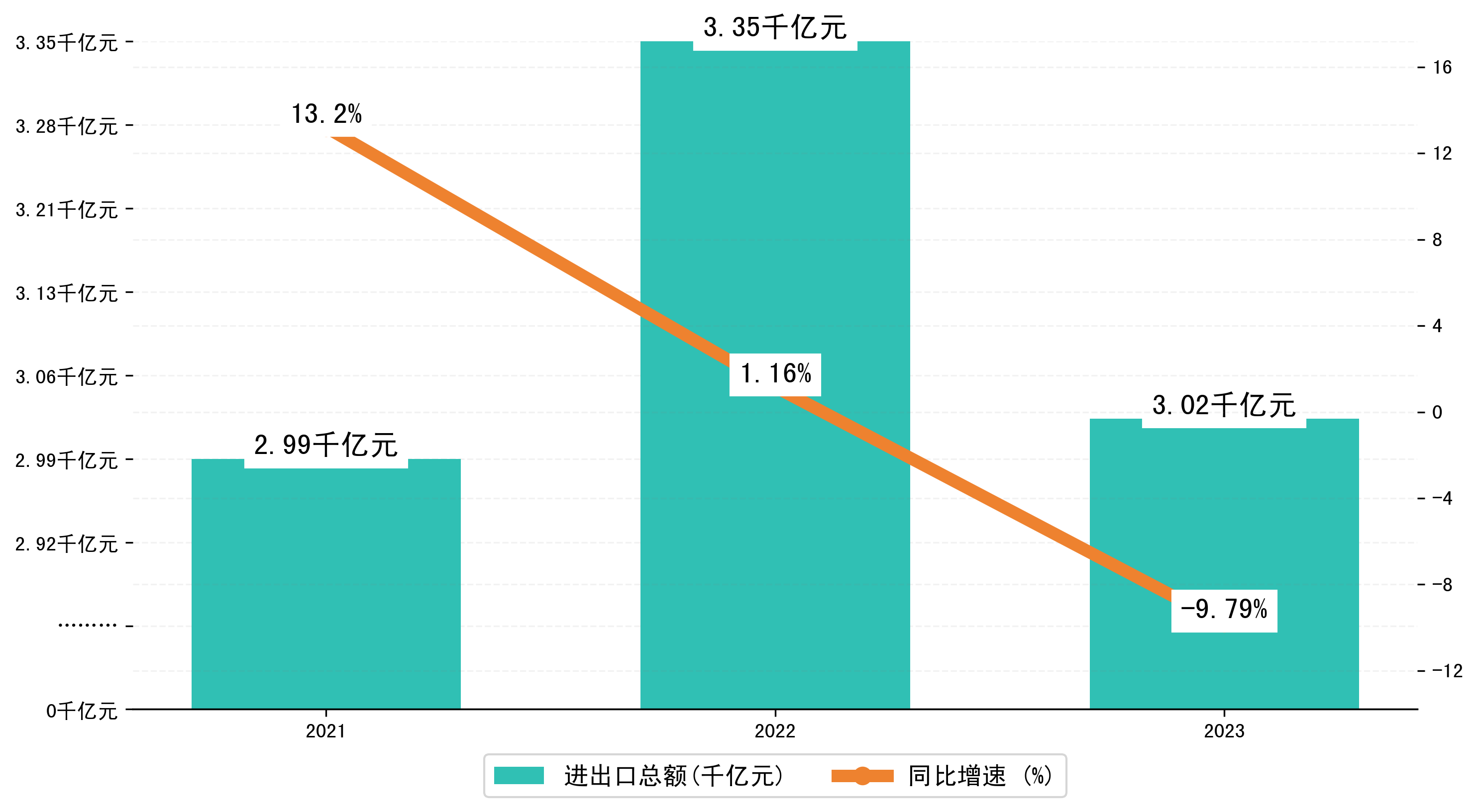 以人民币计,2023年1-5月成都市进出口总额为3023,2989.1129万元,相比上年同期减少了328,2678.1976万元,同比减少了-9.60%。