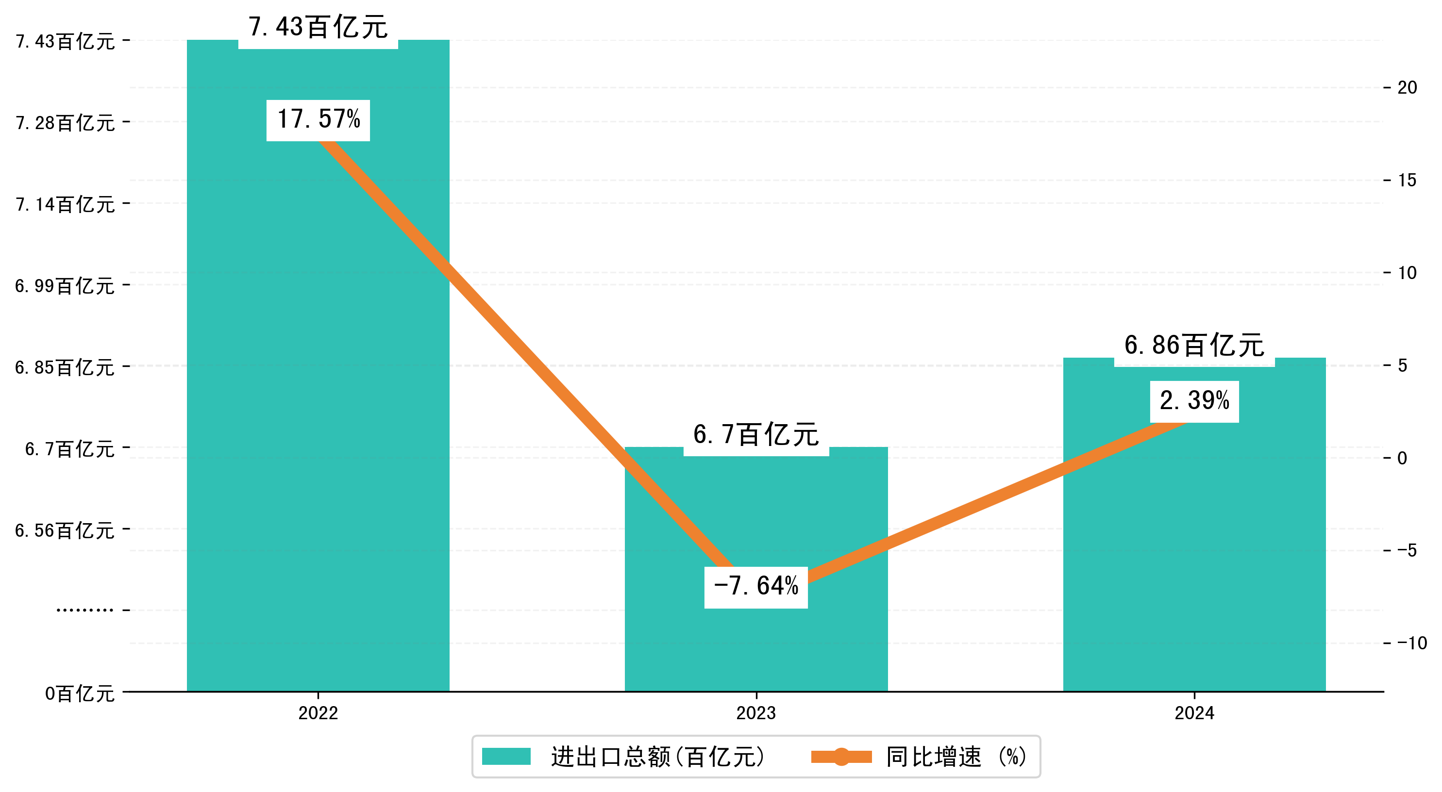以人民币计,2024年1月成都市进出口总额为686,0736.8178万元,相比上月增加了29,3078.3879万元;相比上年同期增加了15,9818.9139万元,同比增加了5.90%。