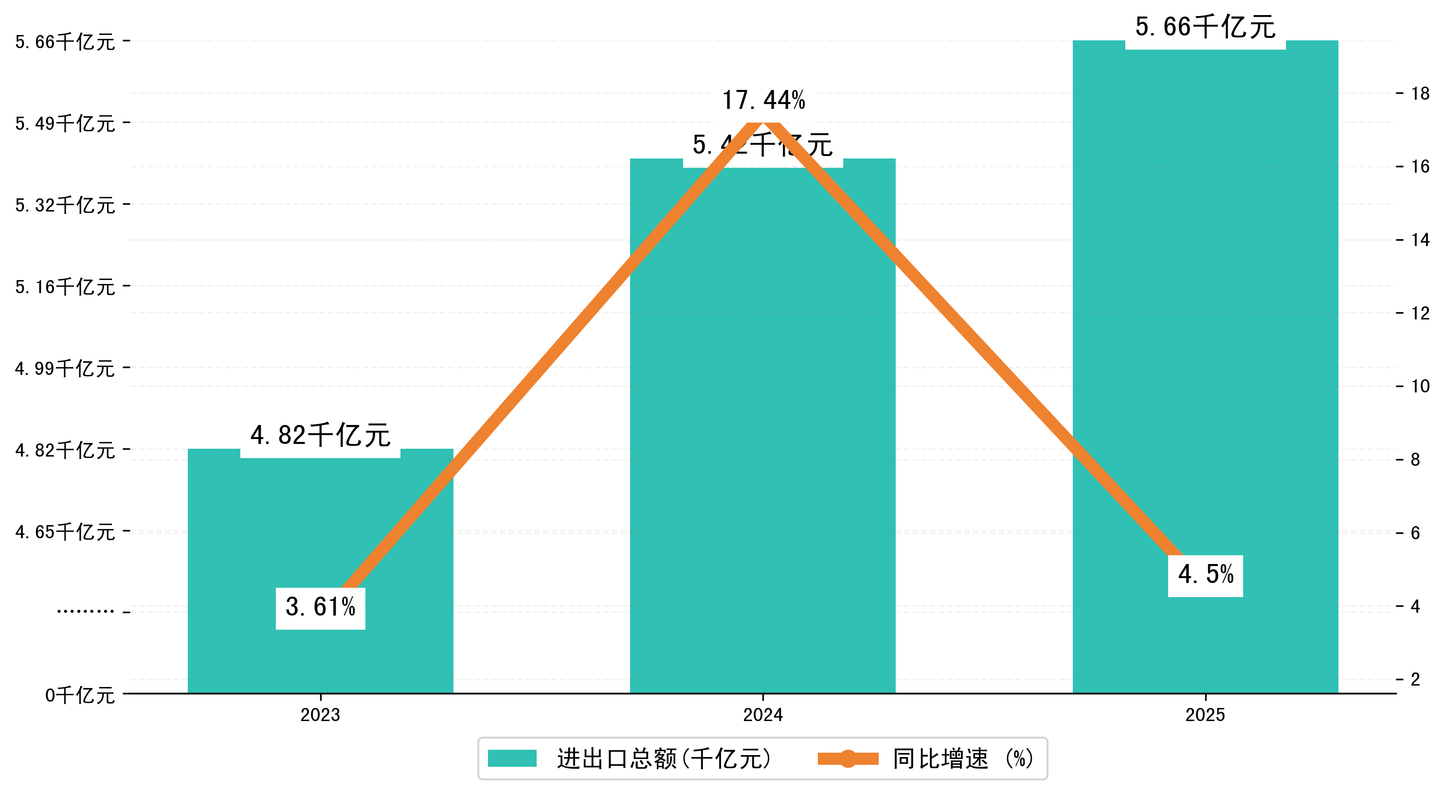 以人民币计,2025年1-8月成都市进出口总额为5661,1747.3469万元,相比上年同期增加了243,5905.1832万元,同比增加了5.00%。