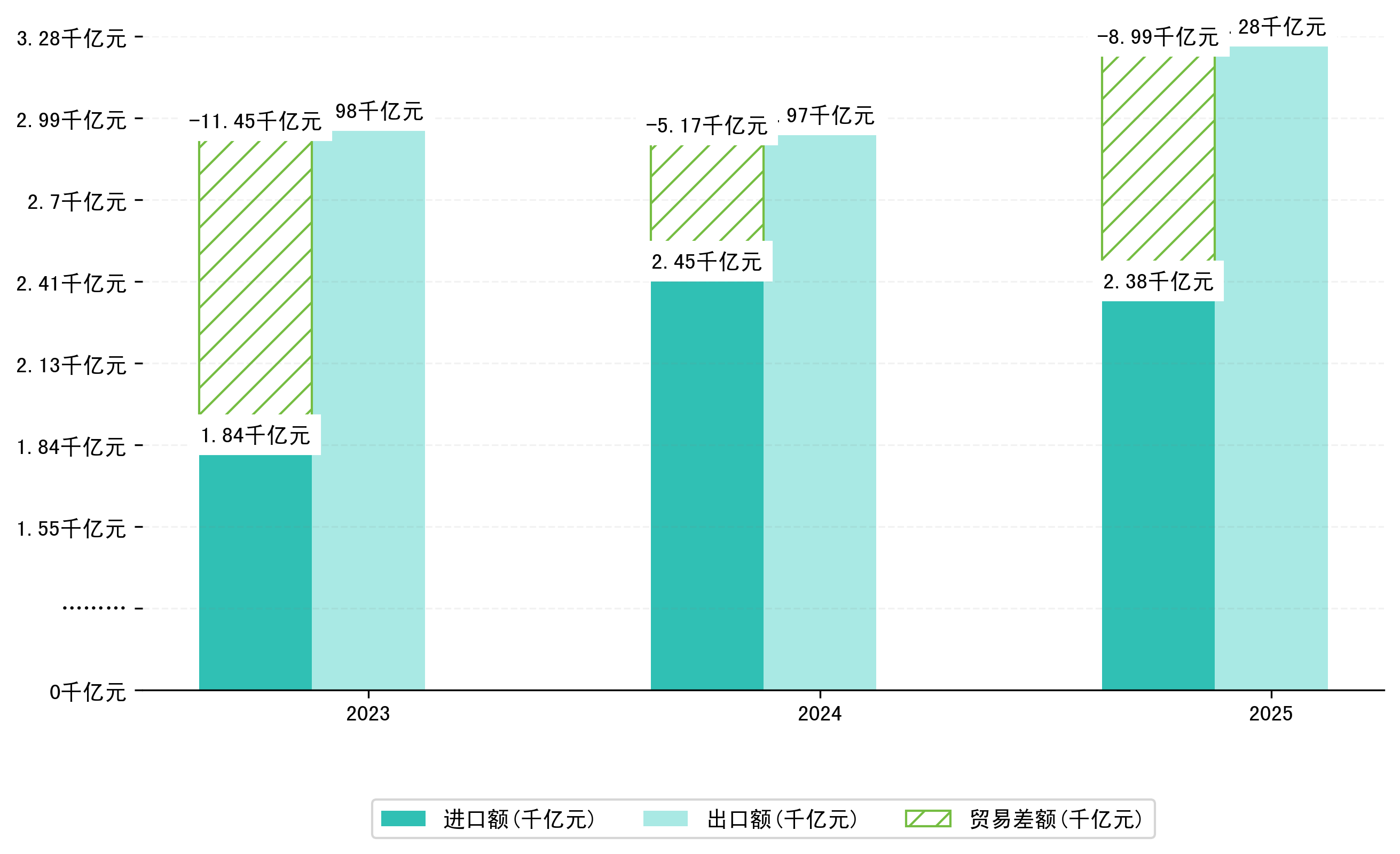 以美元计,2025年1-8月成都市贸易差额为125,1252,0997万美元(贸易顺差),相比上年同期增加了52,4243,3971万美元,同比增加72.11%。