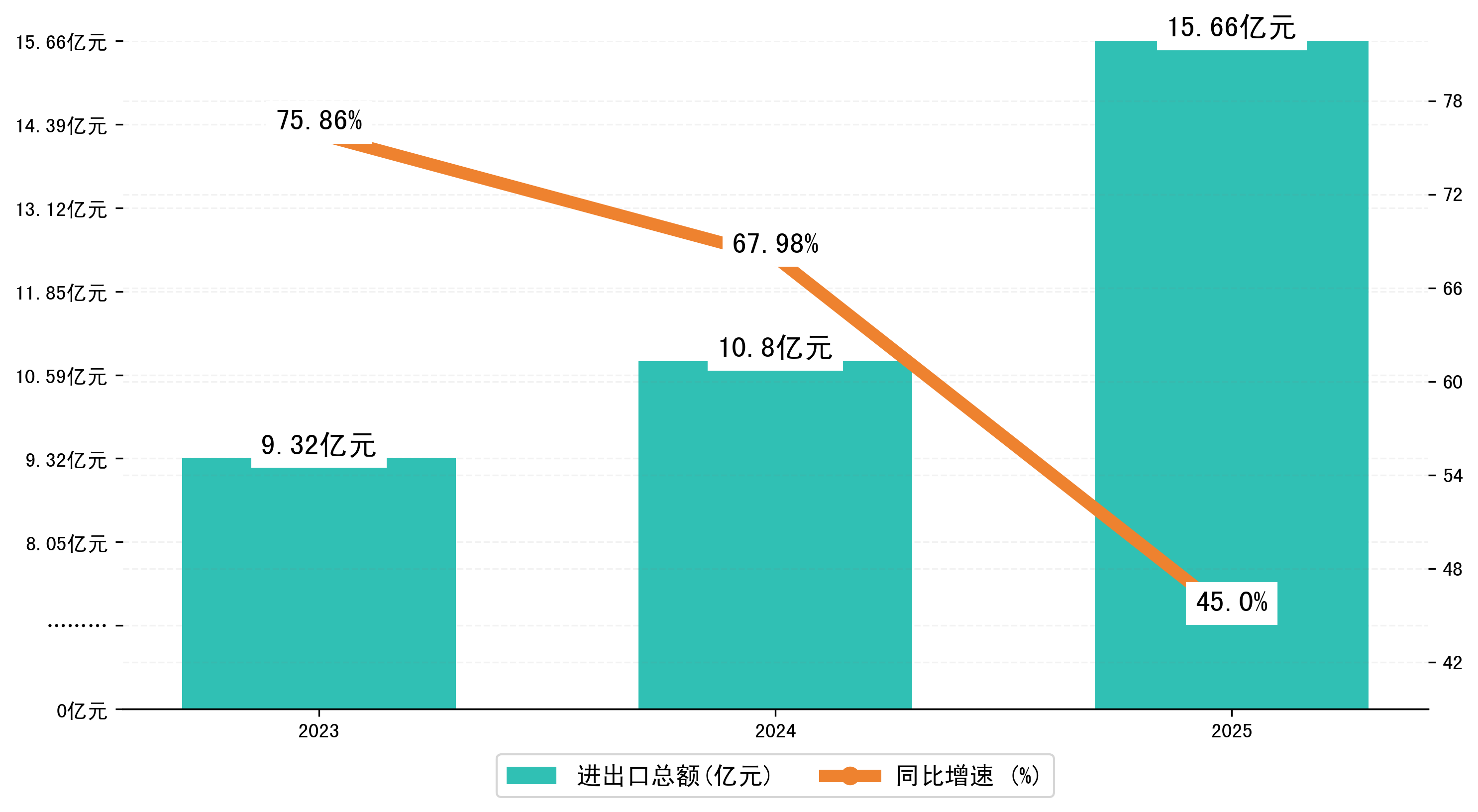 以人民币计,2025年1-1月池州市进出口总额为15,6559.3922万元,相比上年同期增加了4,8588.1001万元,同比增加了44.00%。