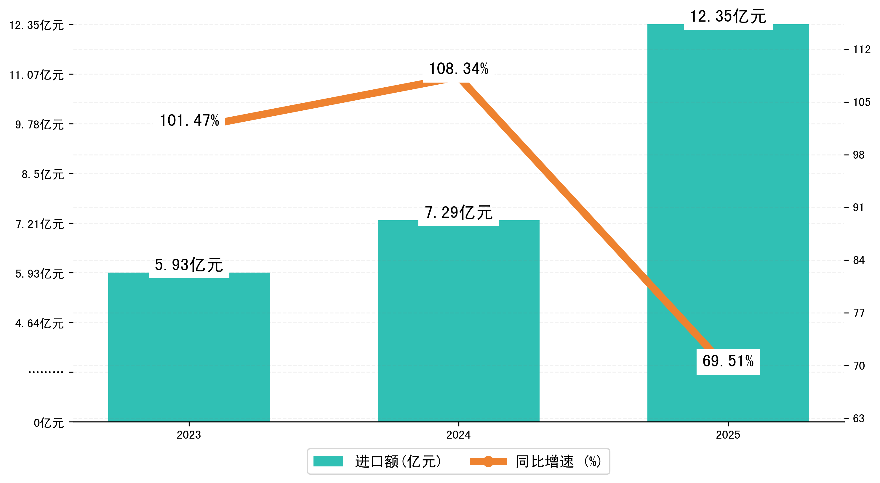 以美元计,2025年1-1月池州市进口额为1,7178.0657万美元,相比上年同期增加了6930.6685万美元,同比增加66.00%。