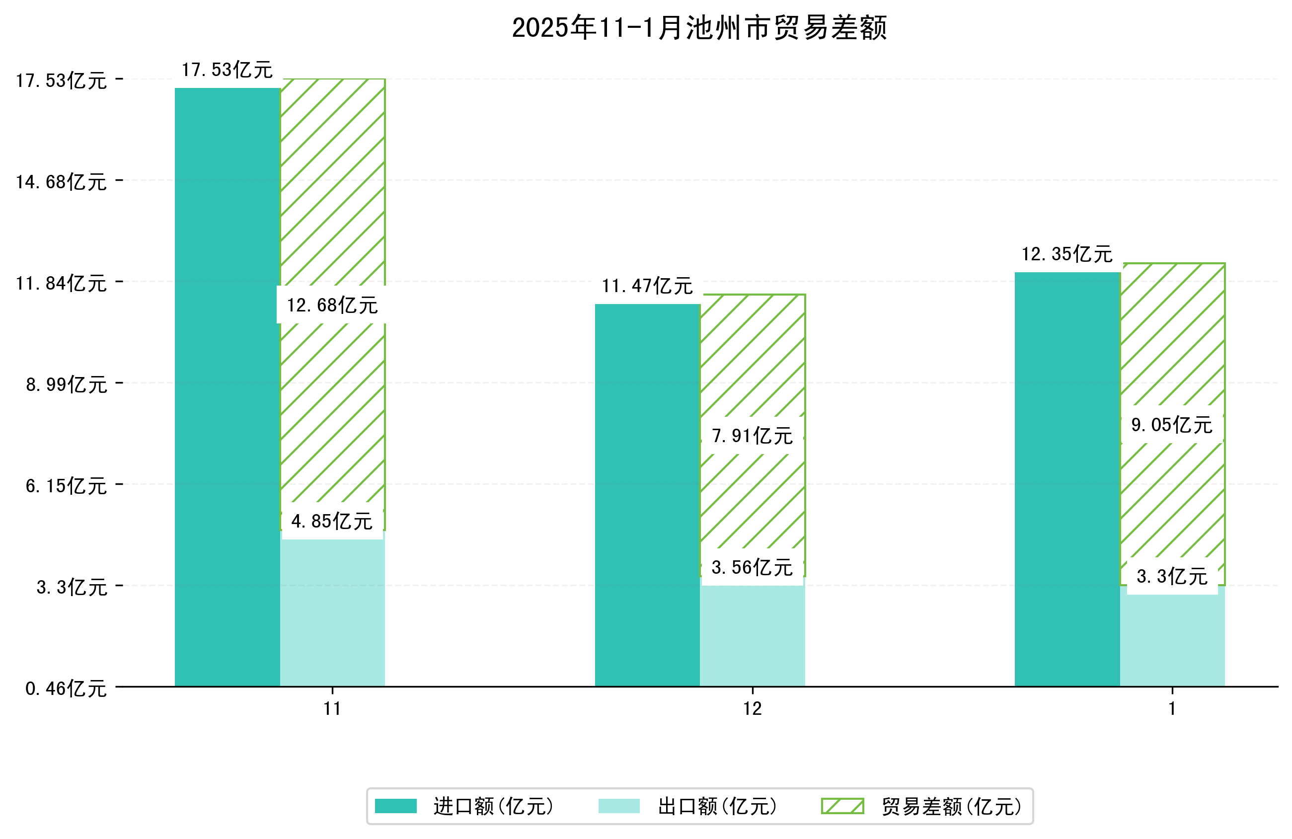 一、2025年1月池州市单月出口总额及进出口差额统计分析
