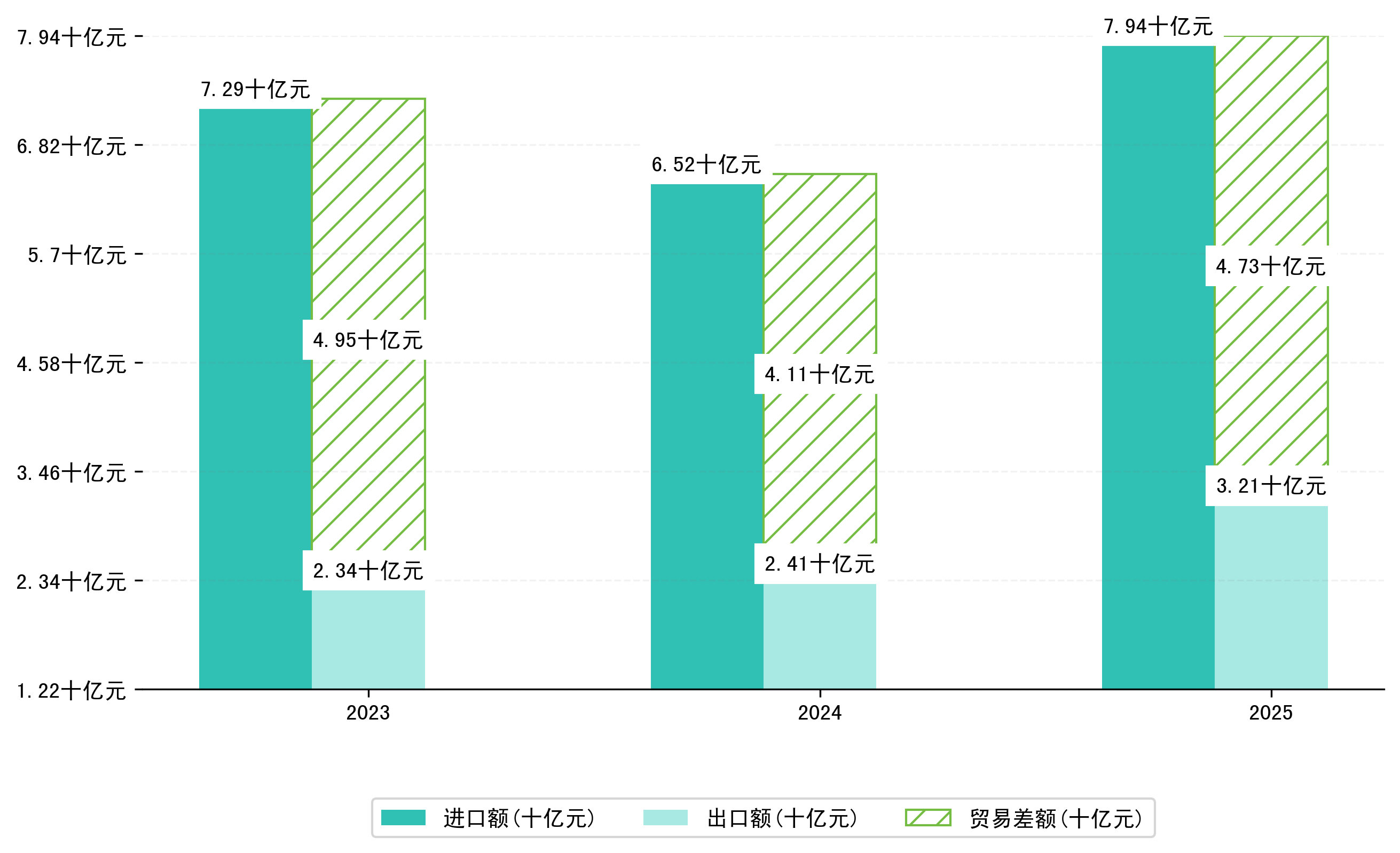 以美元计,2025年1-8月池州市贸易差额为6,5891,5101万美元(贸易逆差),相比上年同期减少了8081,6935万美元,同比减少13.98%。
