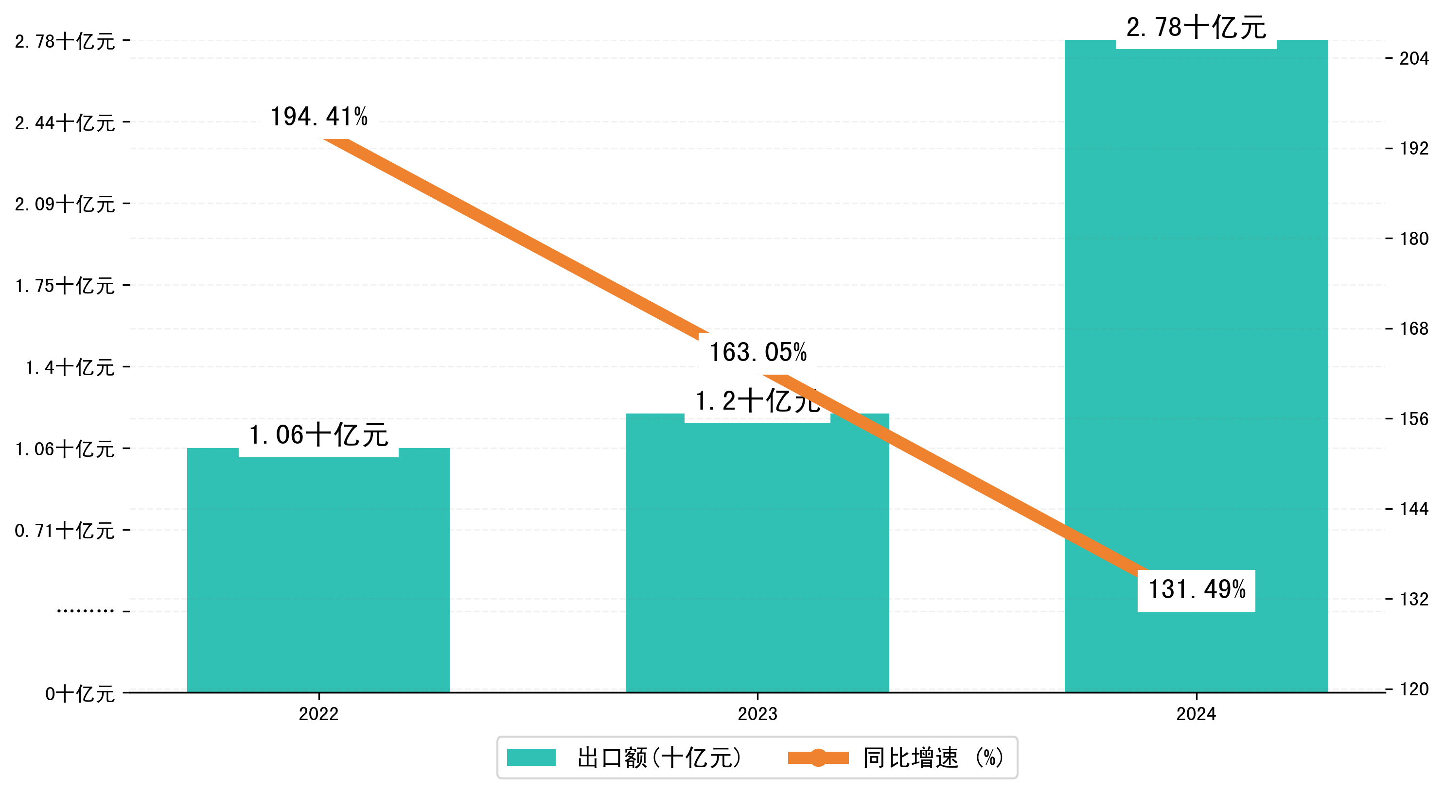 以人民币计,2024年1-2月防城港市出口额为27,8245.1468万元,相比上年同期增加了15,8049.8862万元,同比增加了131.60%。