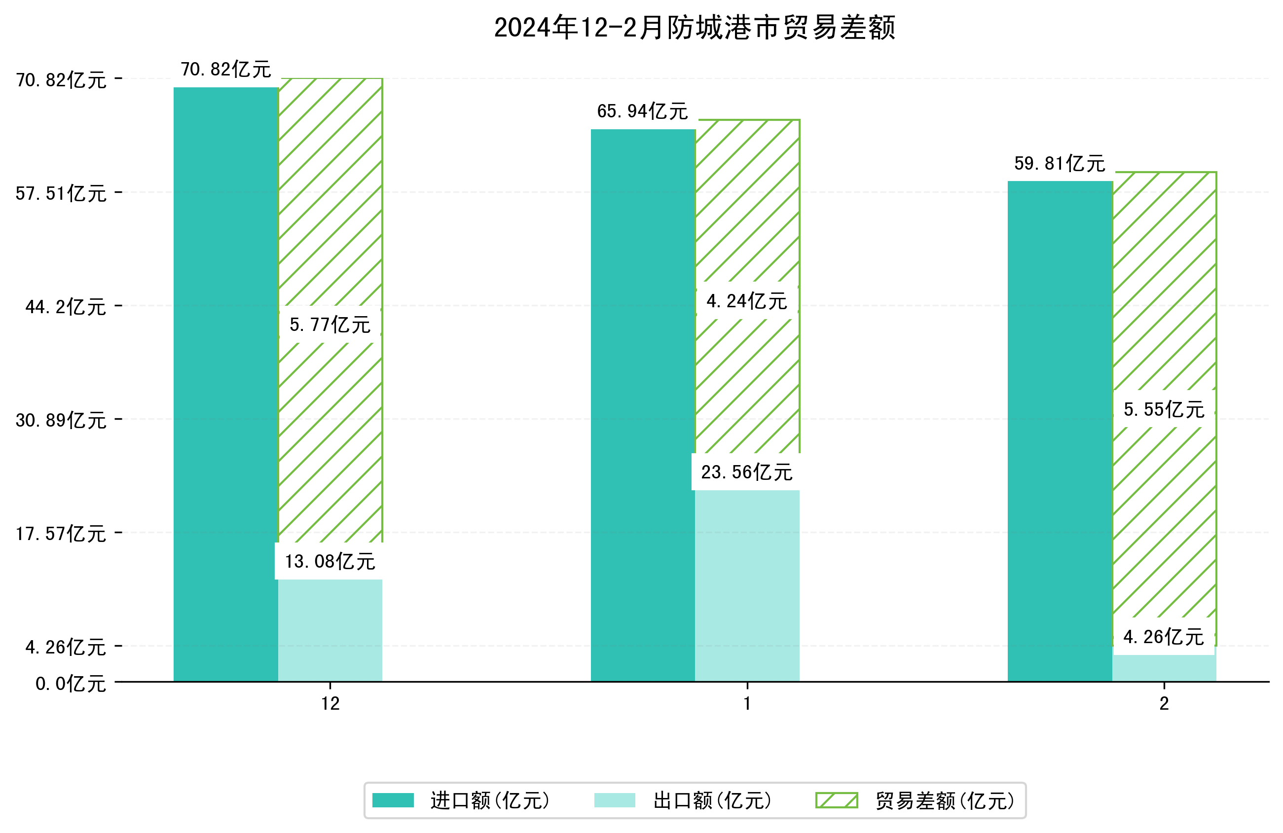 2024年2月防城港市进出口总额及进出口差额统计分析