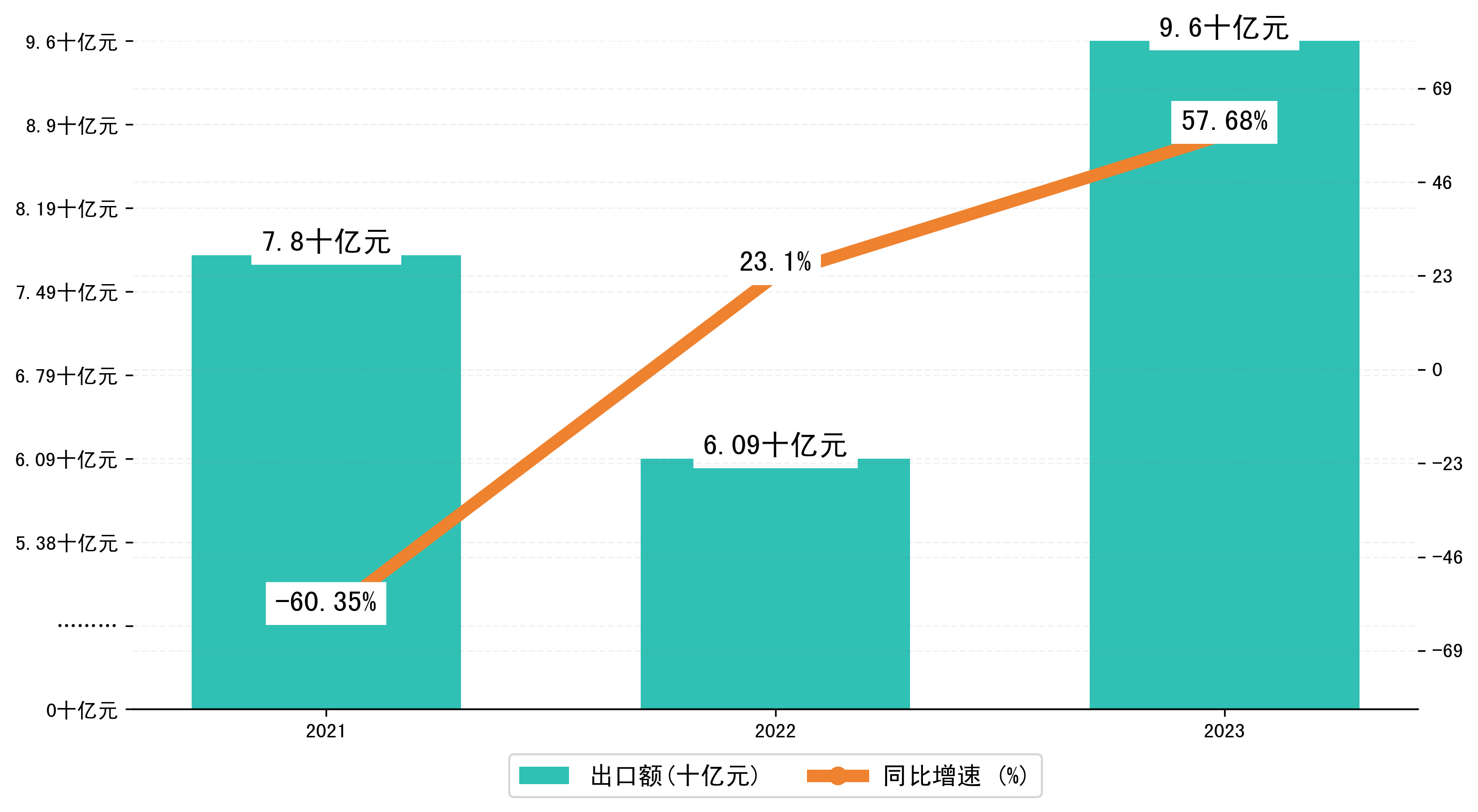 以人民币计,2023年1-12月防城港市出口额为95,9741.173万元,相比上年同期增加了35,1093.2074万元,同比增加了57.70%。