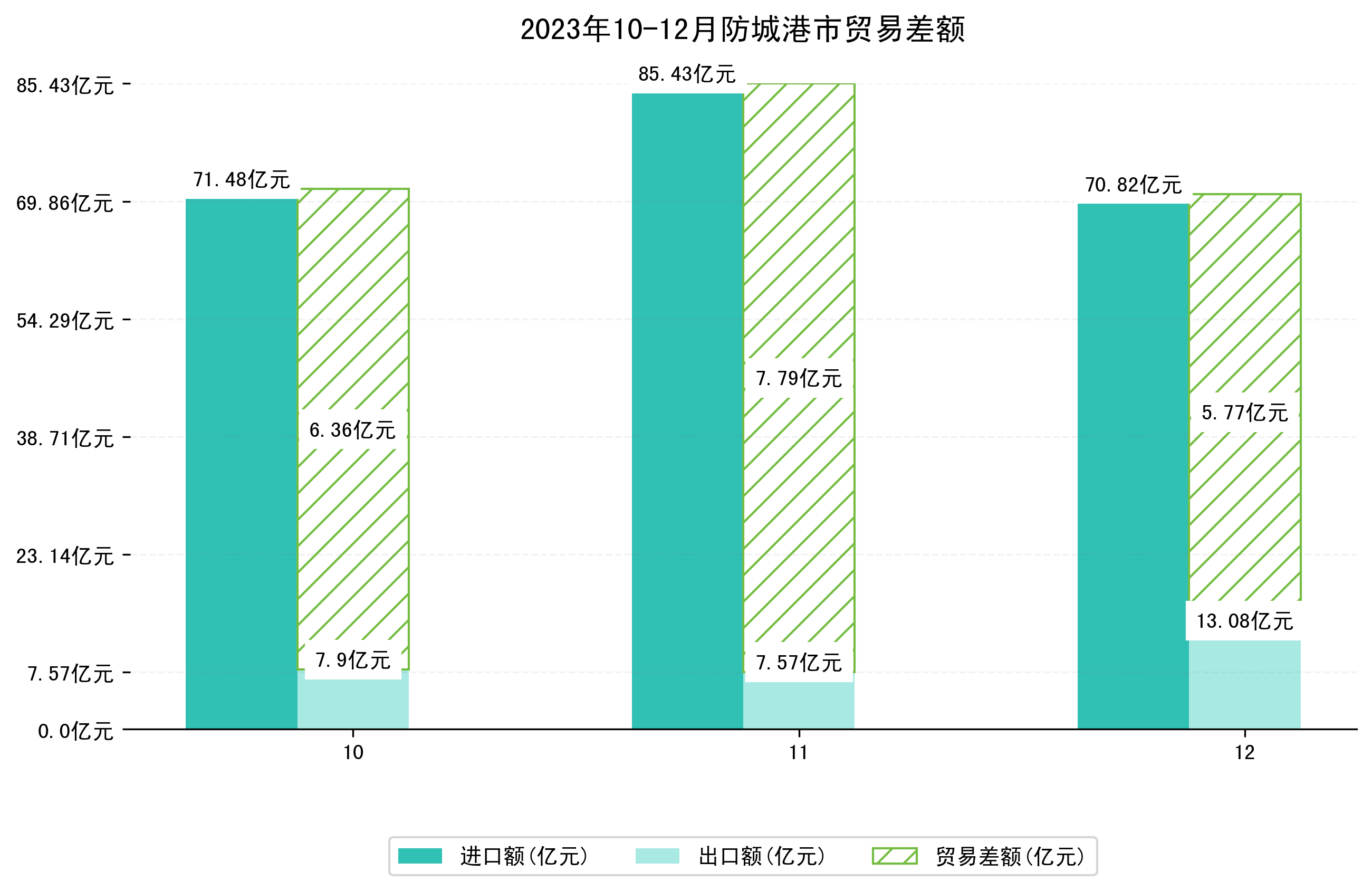 (图一:2023年10-12月防城港市进出口总额)