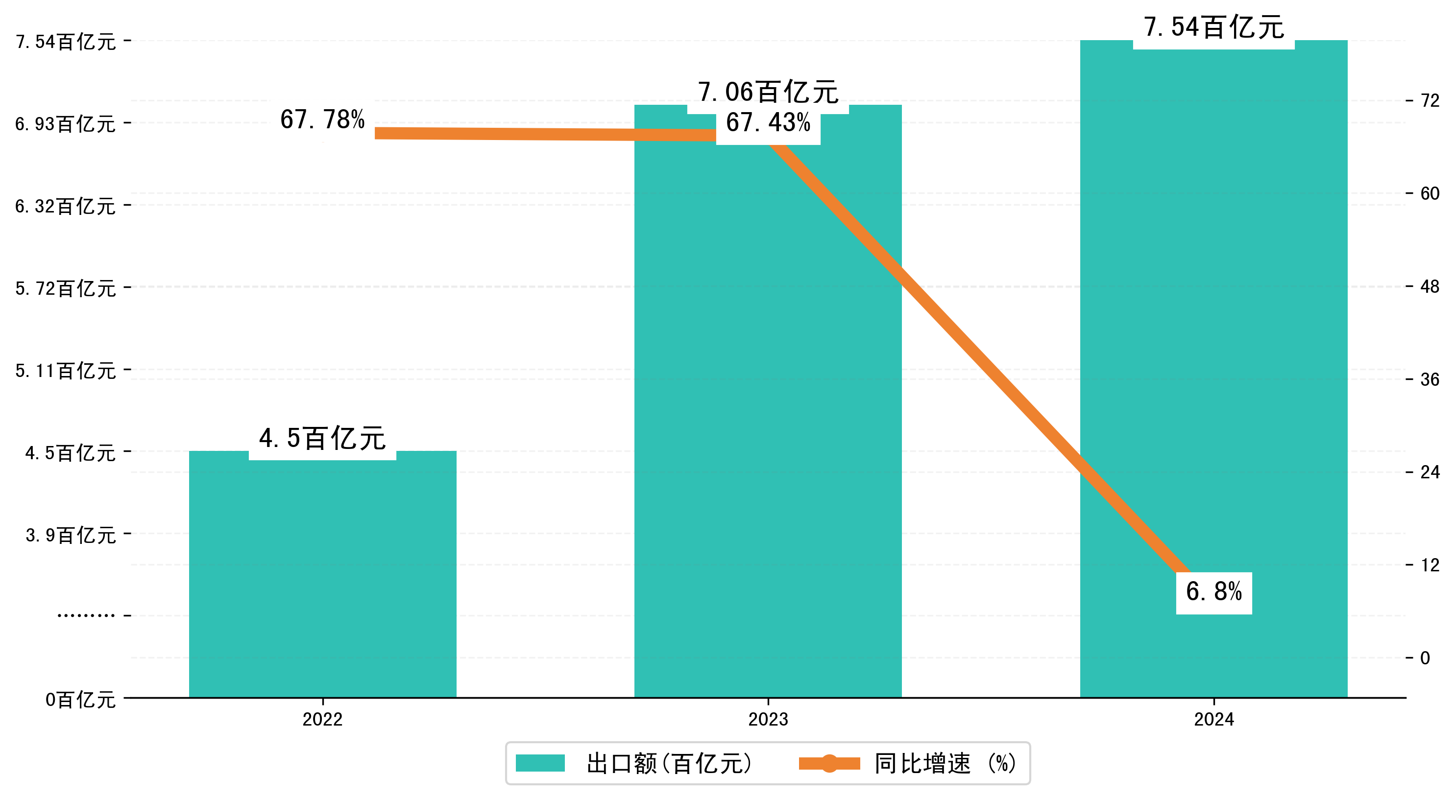 以人民币计,2024年1-3月福州市出口额为753,8276.5587万元,相比上年同期增加了47,9777.5274万元,同比增加了16.20%。