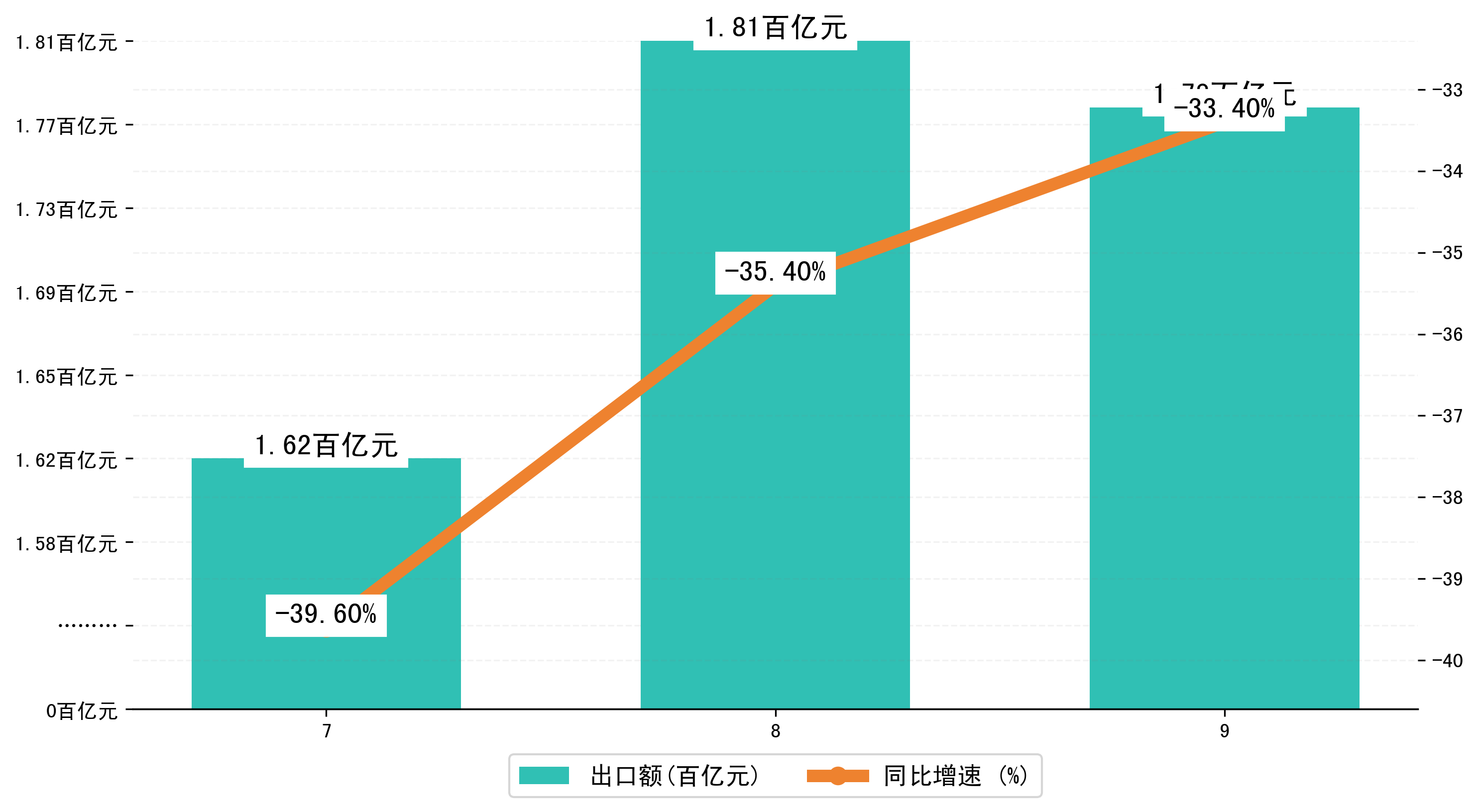 以人民币计,2025年9月福州市出口额为177,9193.9747万元,相比上月减少了3,1003.1586万元;相比上年同期减少了34,5994.8254万元,同比减少了-33.40%。