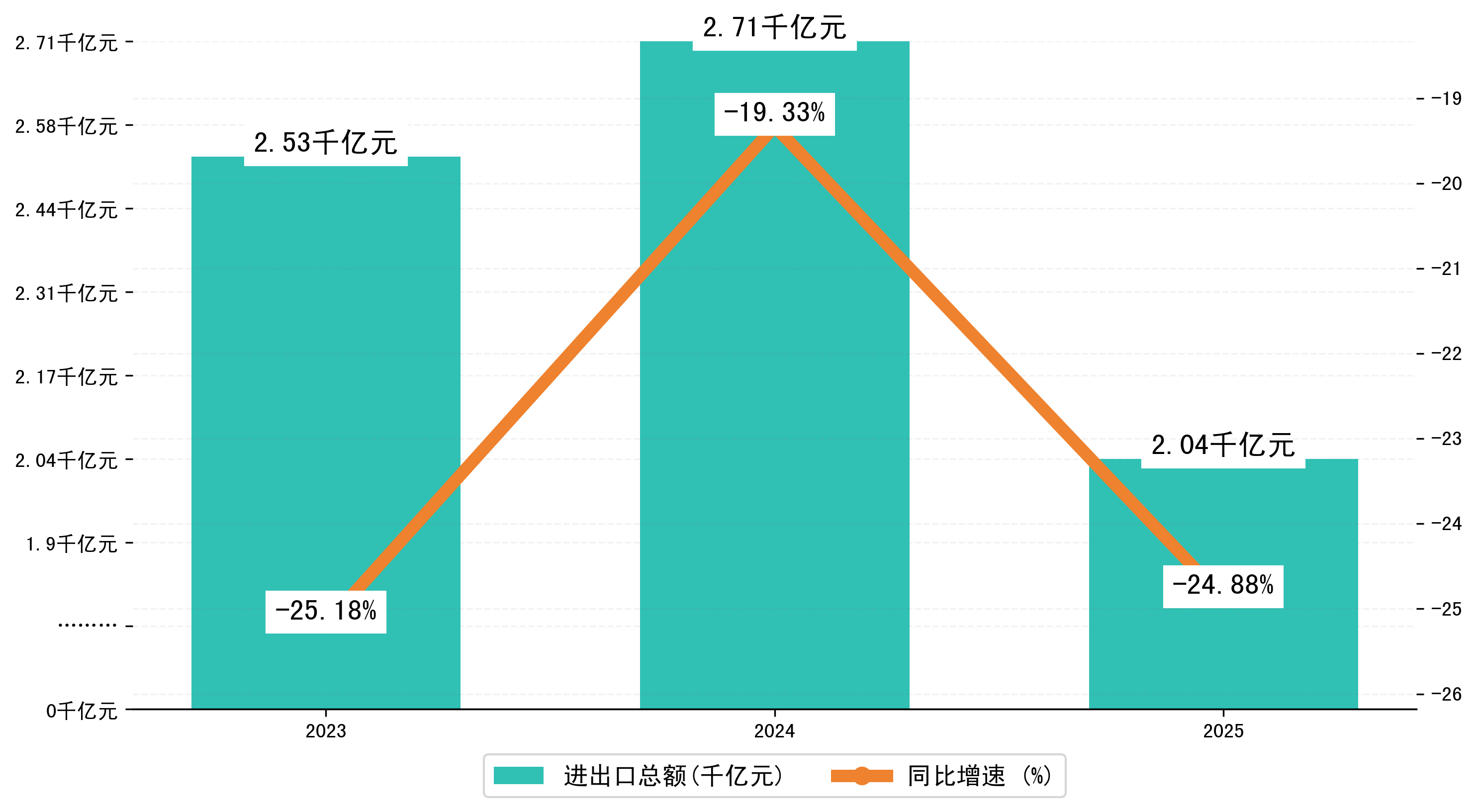 以人民币计,2025年1-9月福州市进出口总额为2037,8104.8821万元,相比上年同期减少了674,7803.7104万元,同比减少了-24.80%。
