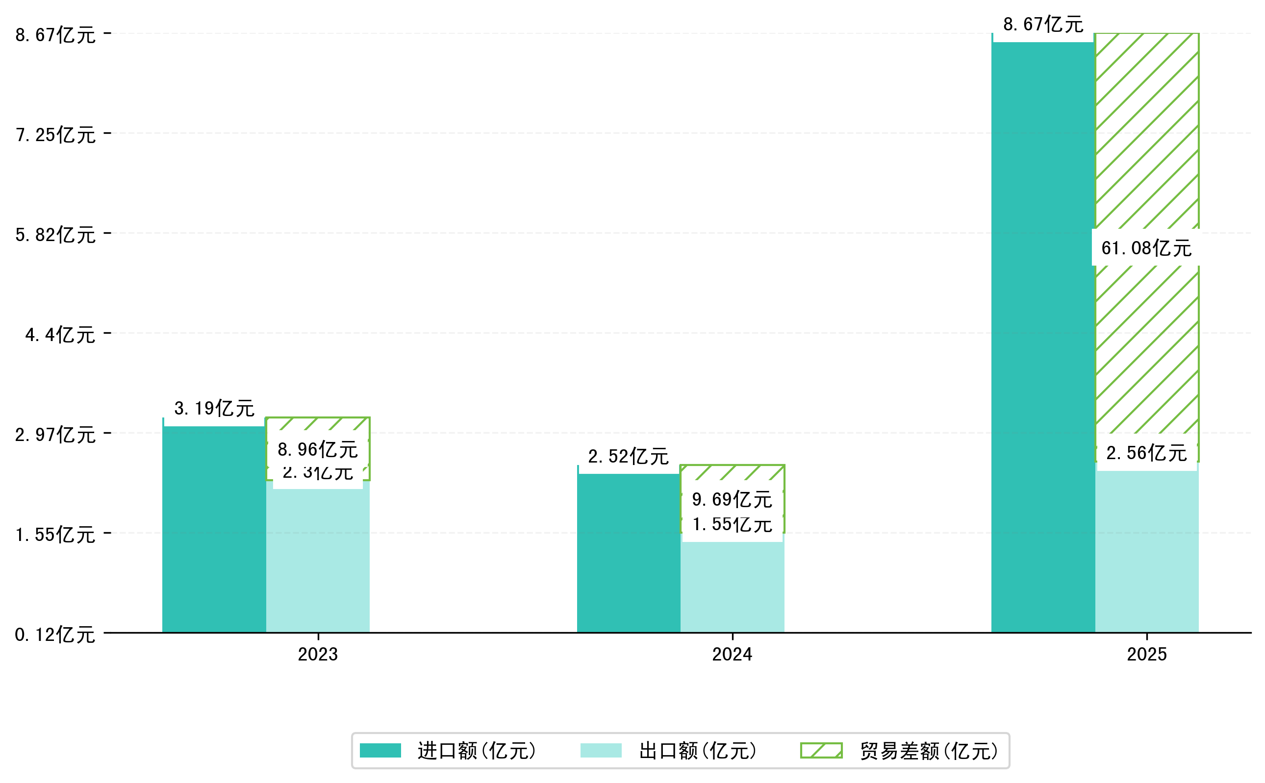 以人民币计,2025年1-8月广元市贸易差额为6,1080,3161万元(贸易逆差),相比上年同期减少了5,1389,2997万元,同比减少530.28%。