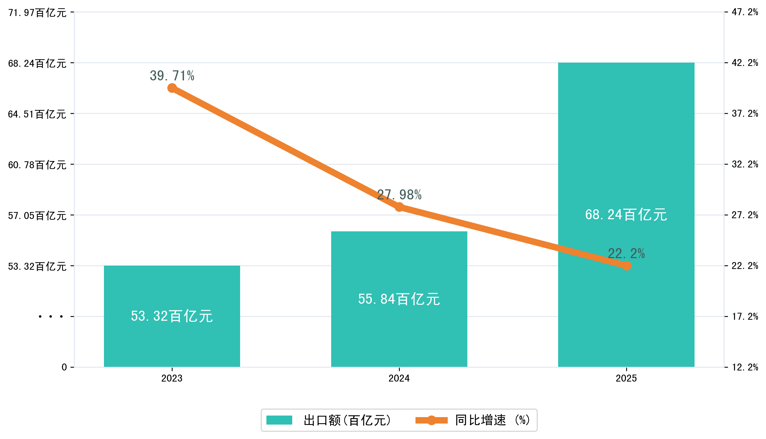 以人民币计,2025年1-10月广州市出口额为6823,6054.1905万元,相比上年同期增加了1239,5905.6911万元,同比增加了20.50%。