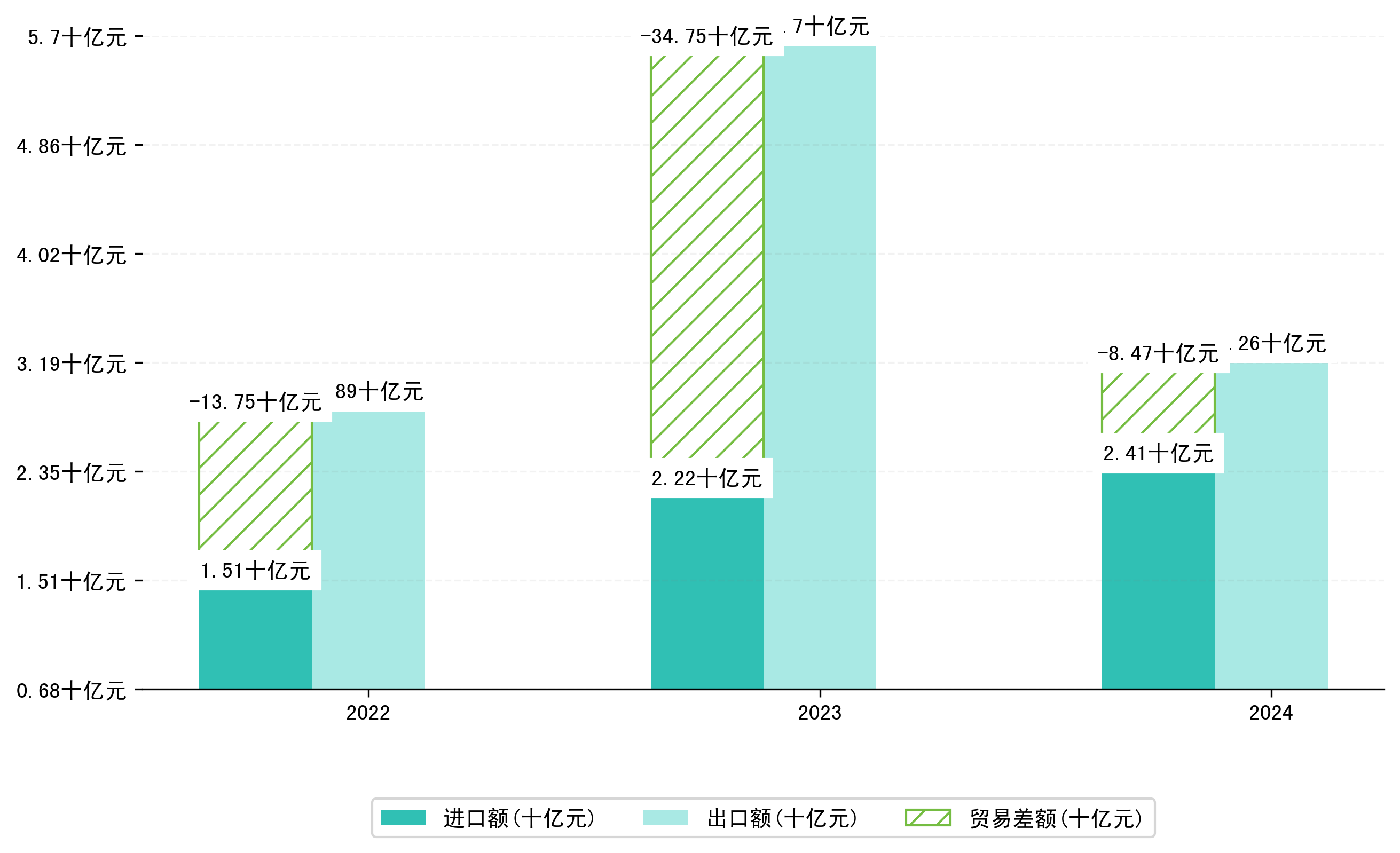 以美元计,2024年2月贵阳市贸易差额为3105,0454万美元(贸易逆差),相比上月减少了1,7931,5414万美元;相比上年同期减少了2,3037,8016万美元,同比减少-115.58%。