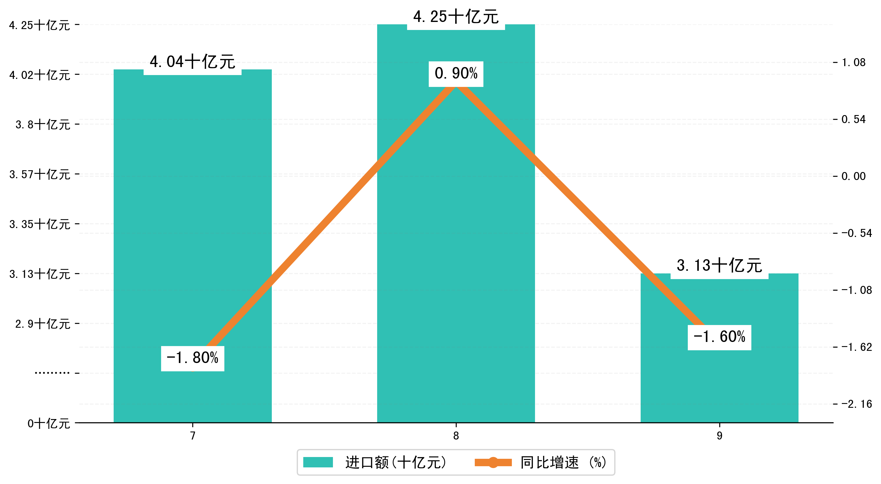 以人民币计,2024年9月海口市进口额为31,2500.2572万元,相比上月减少了11,2103.2164万元;相比上年同期减少了8,4221.8527万元,同比减少了-1.60%。