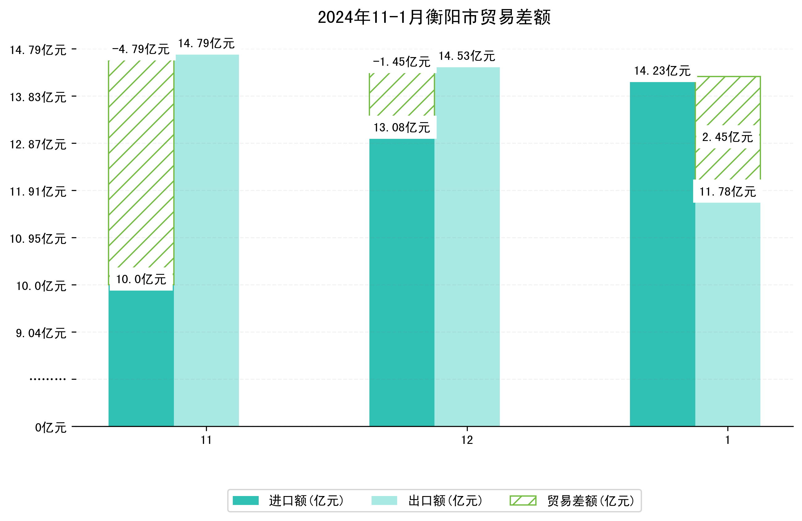 (图四:2024年11-1月衡阳市贸易差额)