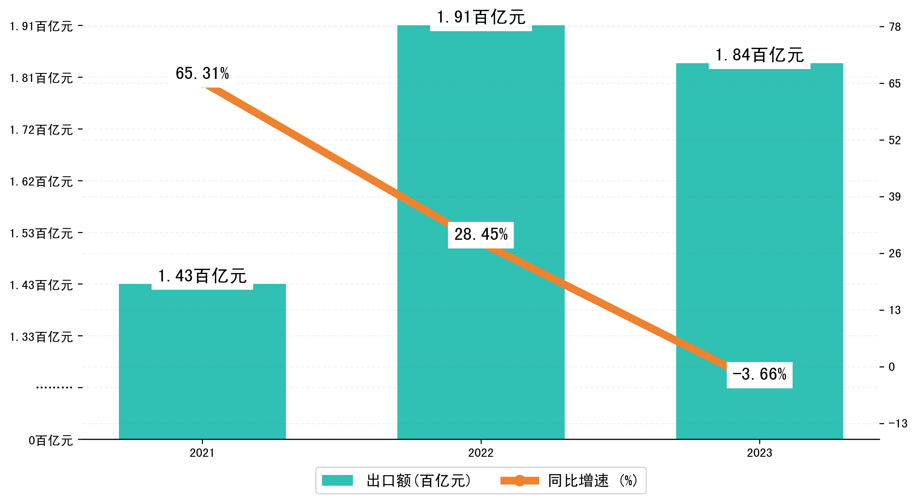以人民币计,2023年1-11月黄石市出口额为183,7264.1406万元,相比上年同期减少了6,9868.0022万元,同比增加了1.80%。