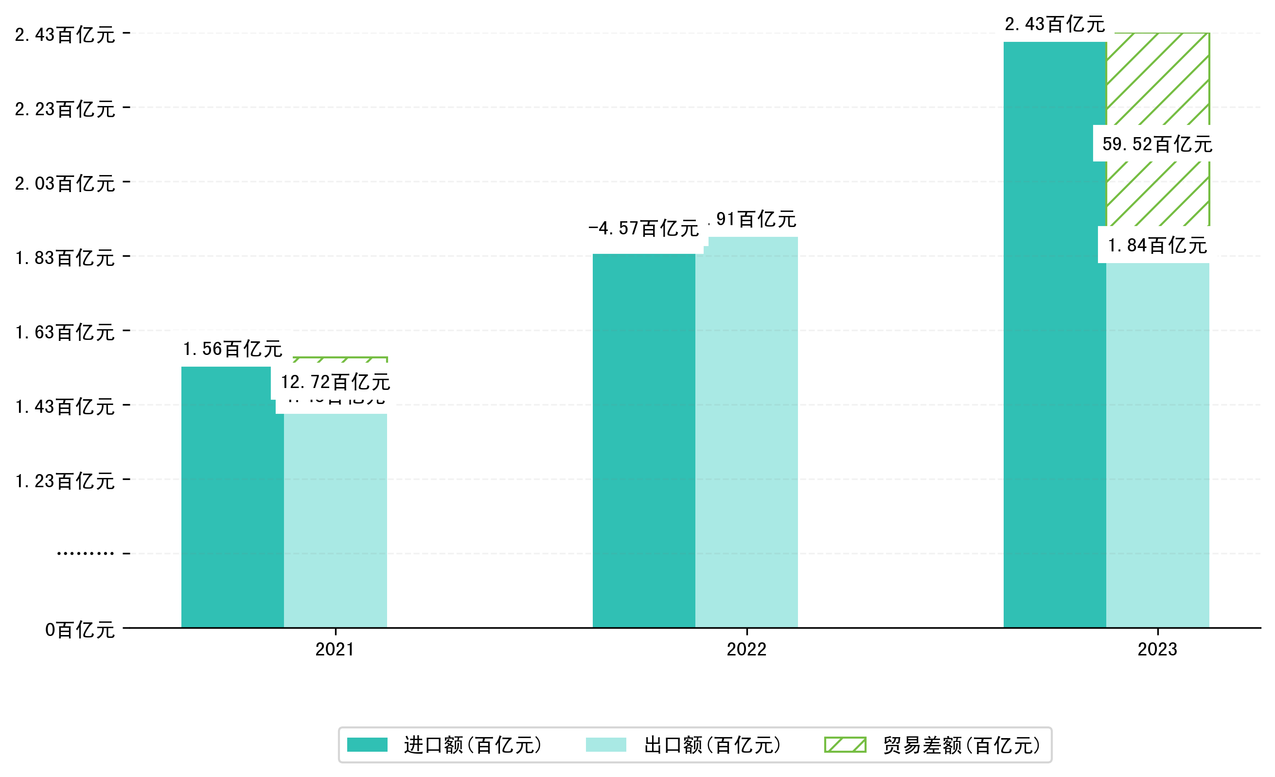 以人民币计,2023年1-11月黄石市贸易差额为59,5245,2977万元(贸易逆差),相比上年同期减少了64,0989,2156万元,同比减少-1401.26%。