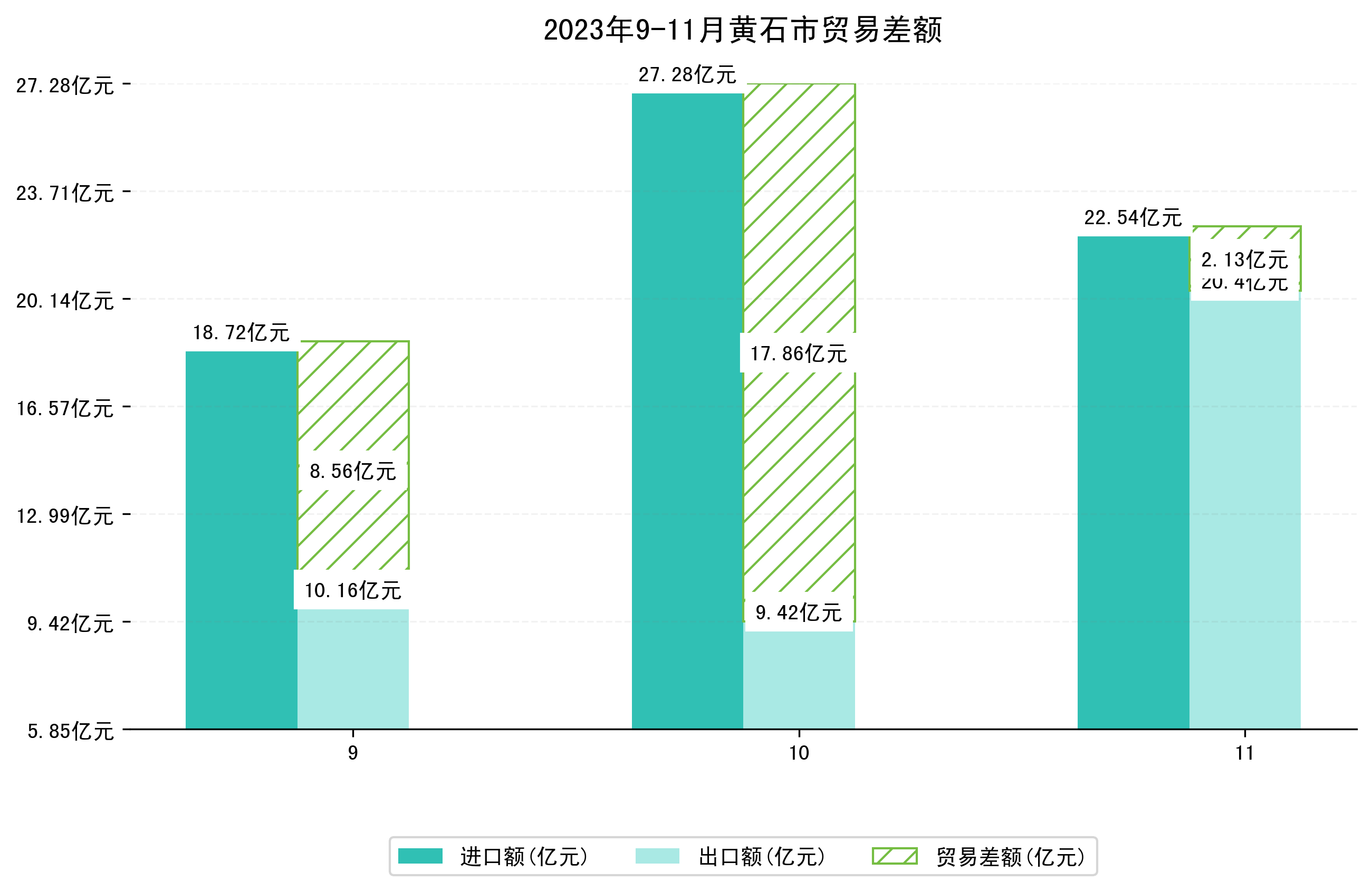 2023年11月黄石市进出口总额及进出口差额统计分析