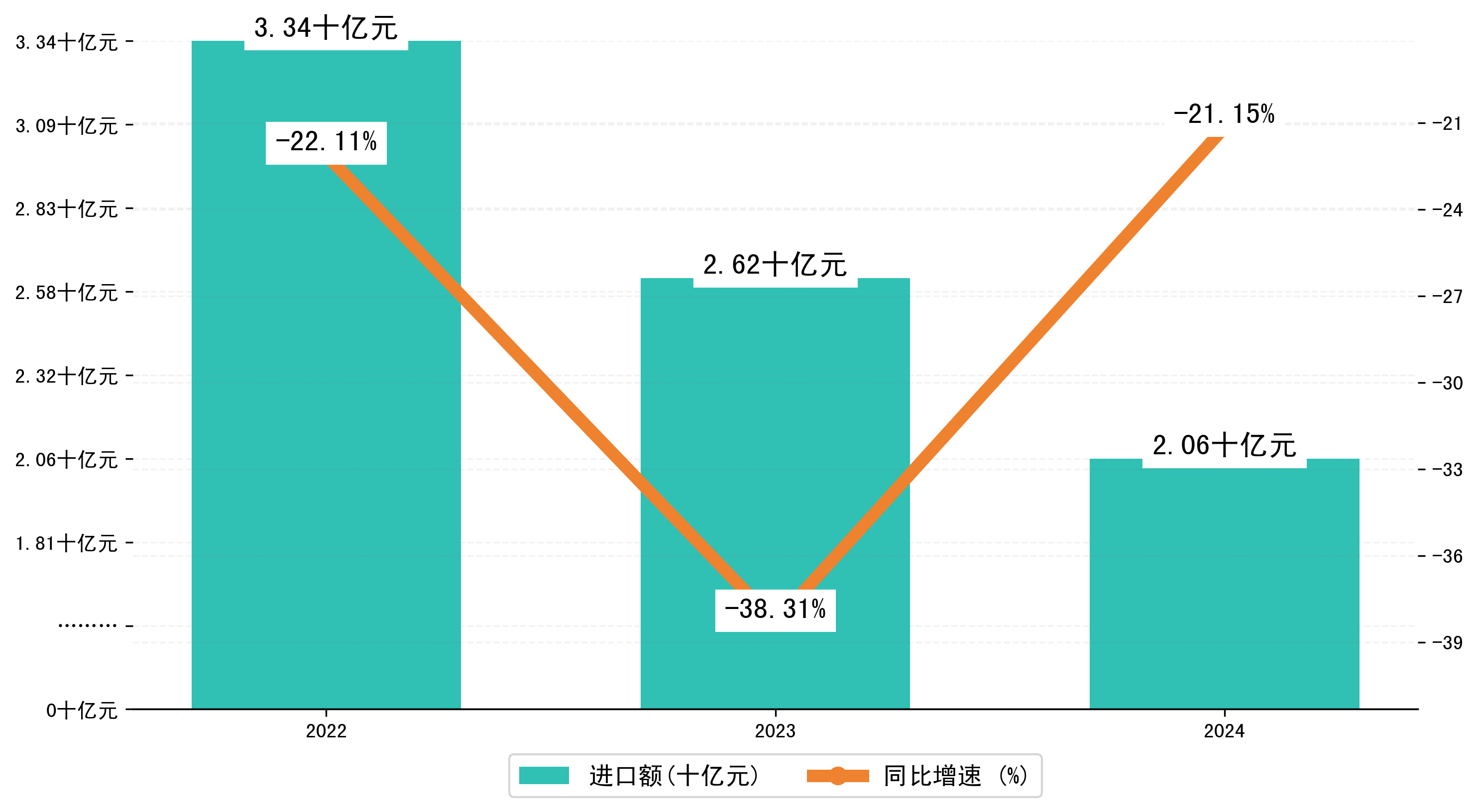 以人民币计,2024年1-3月呼和浩特市进口额为20,6306.4329万元,相比上年同期减少了5,5353.0787万元,同比减少了-21.20%。
