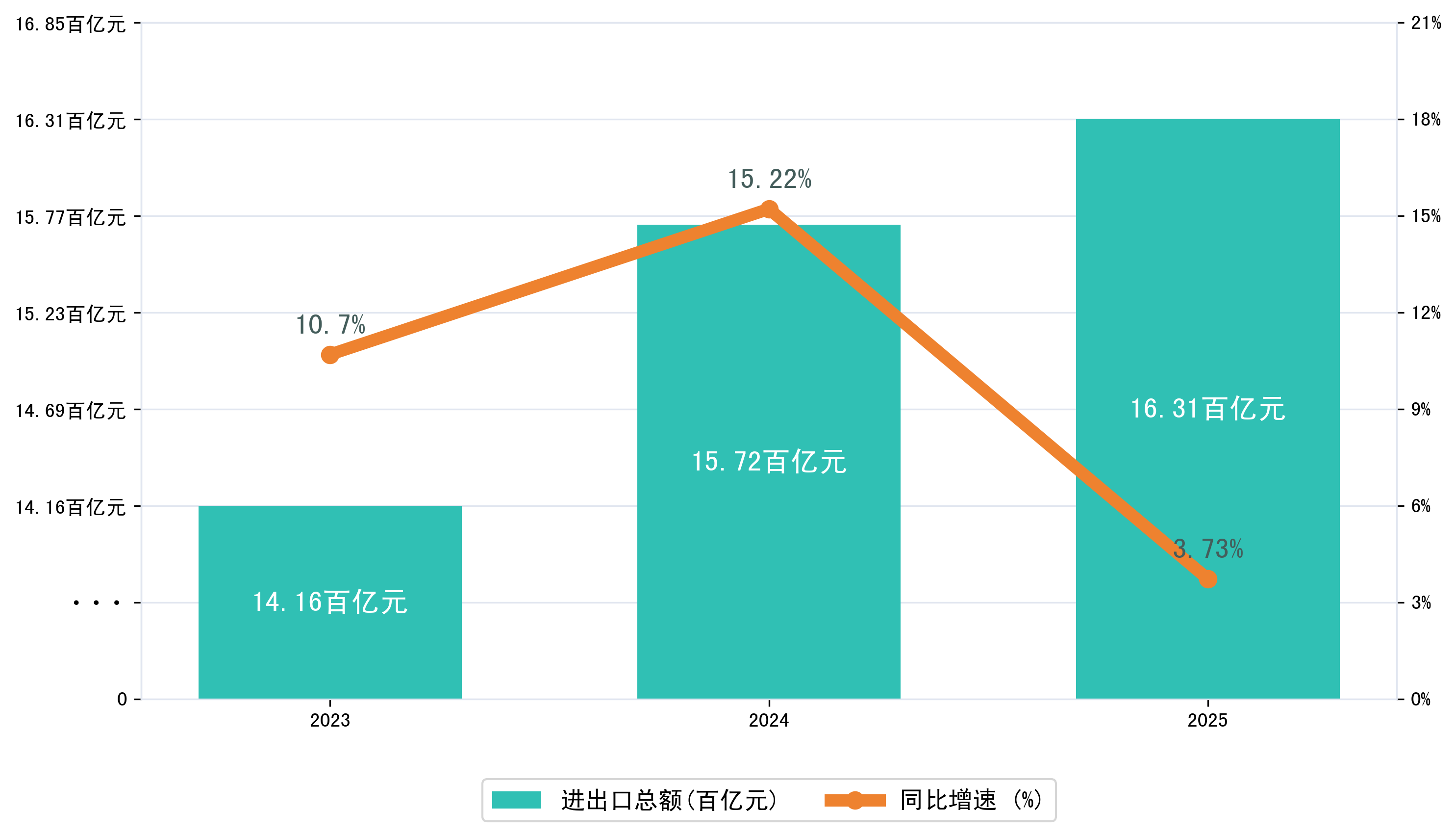 以美元计,2025年1-10月江门市贸易差额为162,8056,7894万美元(贸易顺差),相比上年同期增加了11,9311,7979万美元,同比增加7.91%。