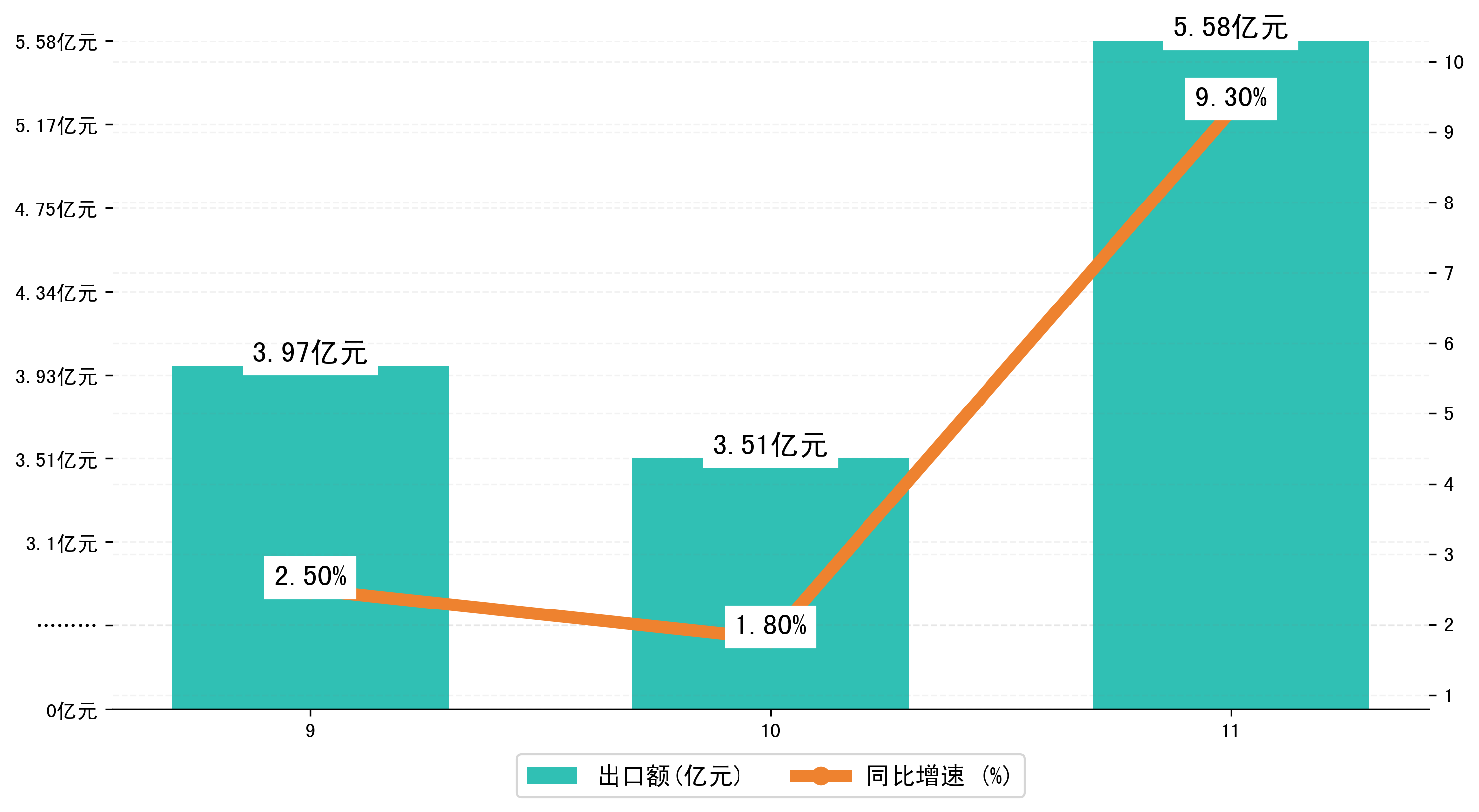 (图二:2024年9-11月吉林市出口额)