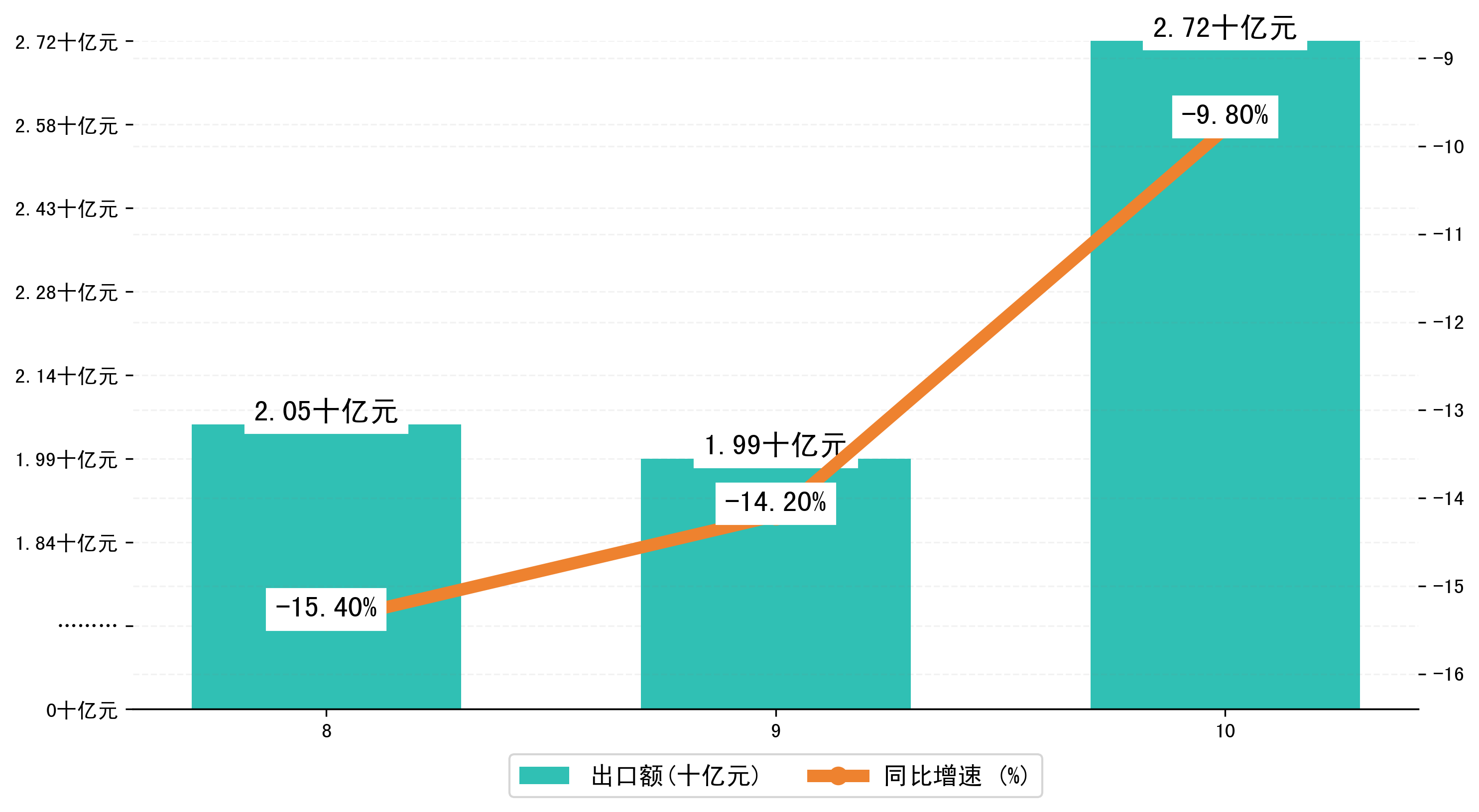 (图二:2023年8-10月荆州市出口额)