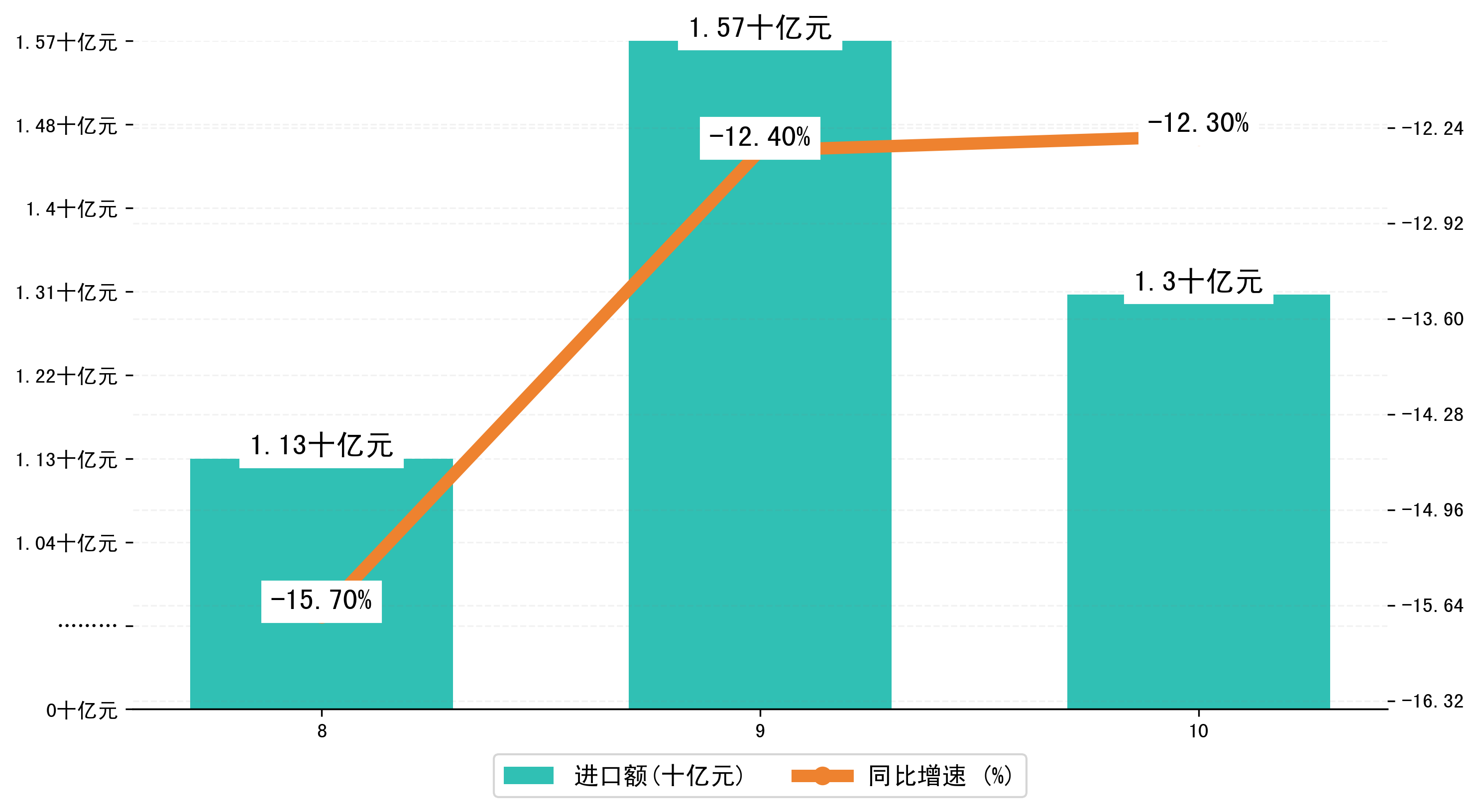 (图三:2023年8-10月荆州市进口额)