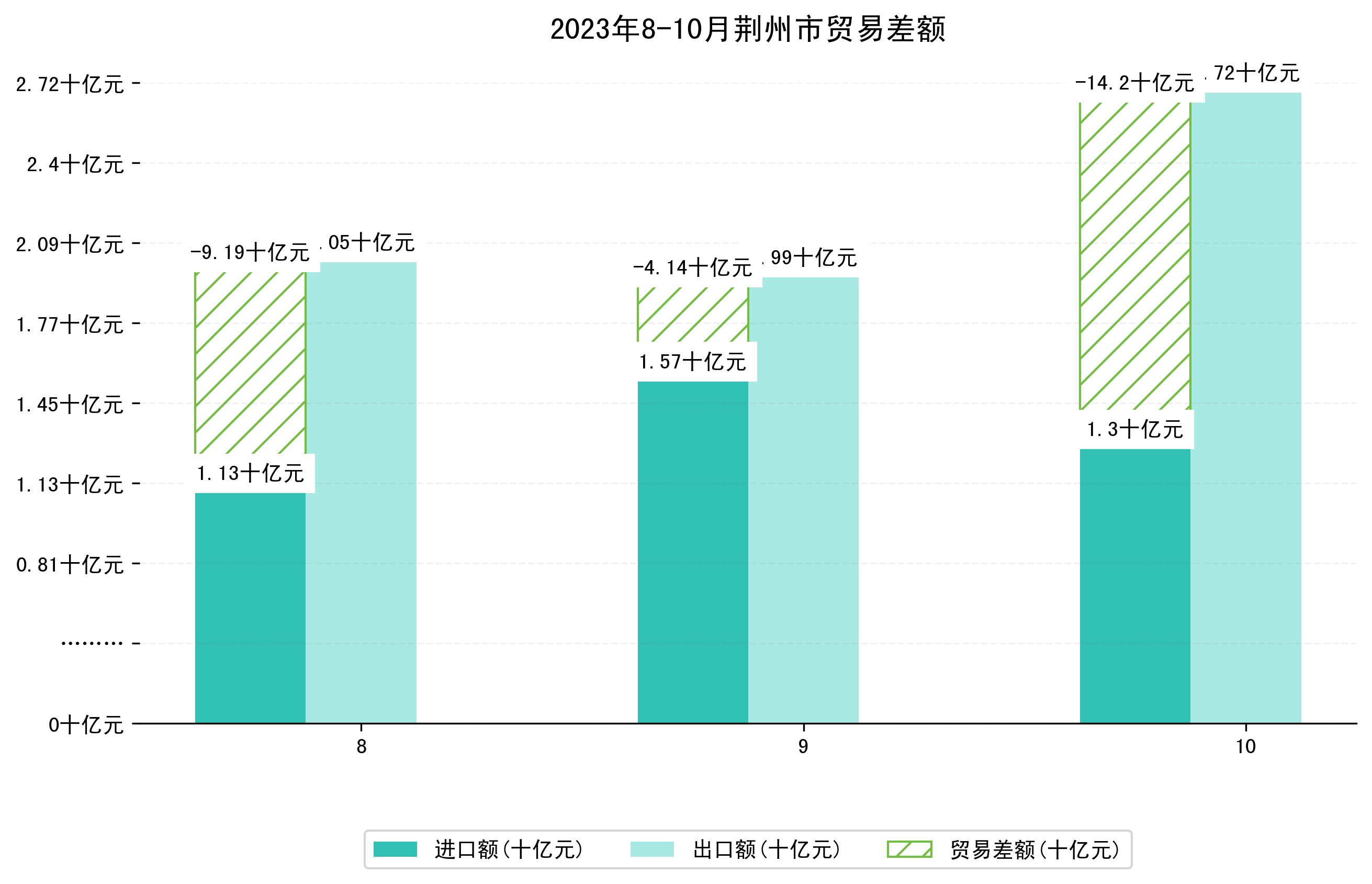 (图四:2023年8-10月荆州市贸易差额)