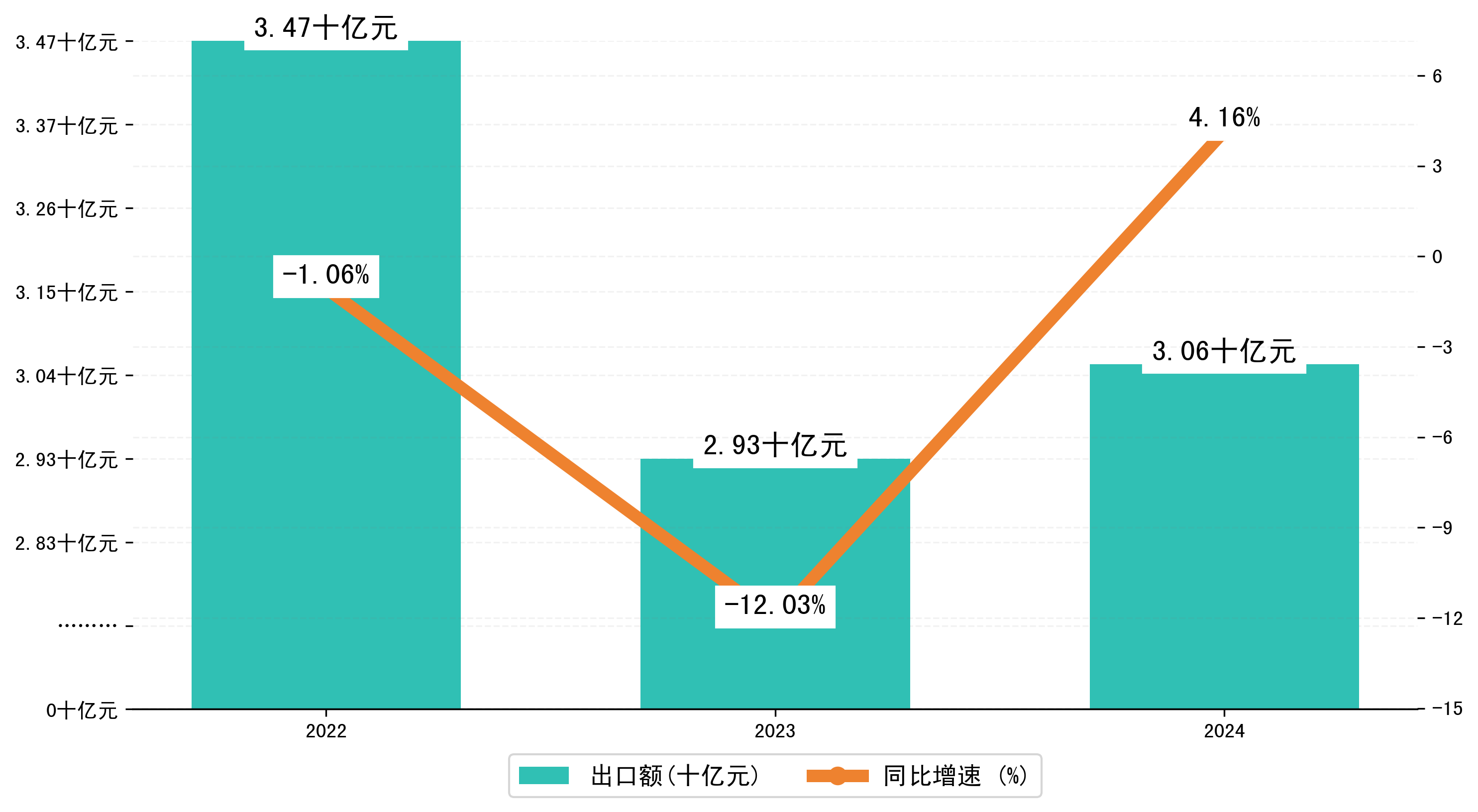 以美元计,2024年1-12月晋中市出口额为4,2929.3802万美元,相比上年同期增加了1247.489万美元,同比增加3.00%。