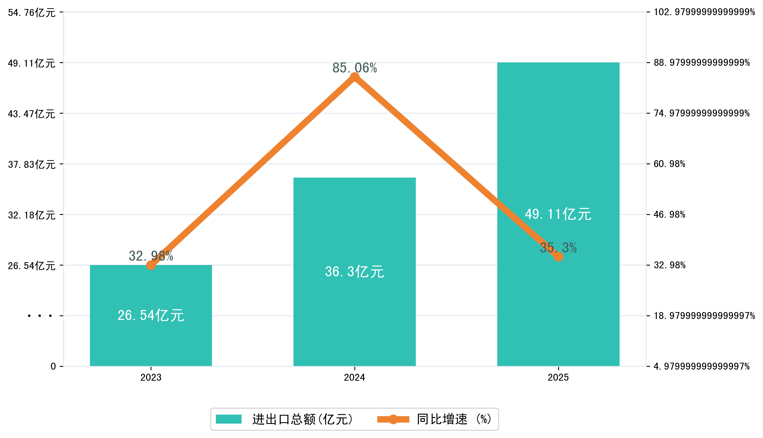 以美元计,2025年1-10月晋中市进出口总额为6,8509.1411万美元,相比上年同期增加了1,7447.2956万美元,同比增加34.50%。
