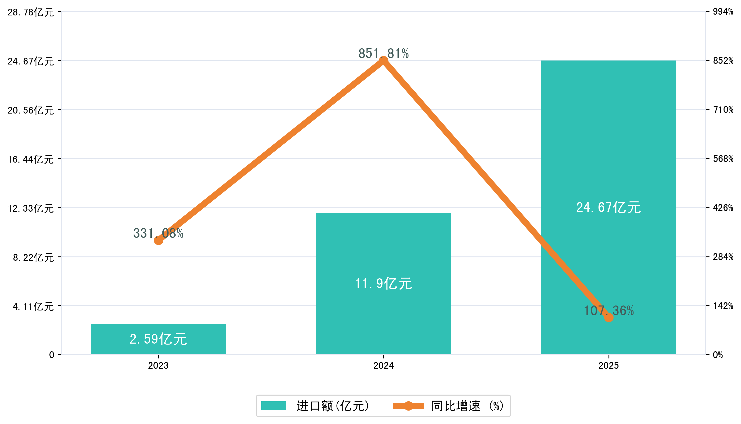 以美元计,2025年10月晋中市进口额为3905.3183万美元,相比上月增加了146.6284万美元;相比上年同期增加了1167.6686万美元,同比增加106.60%。