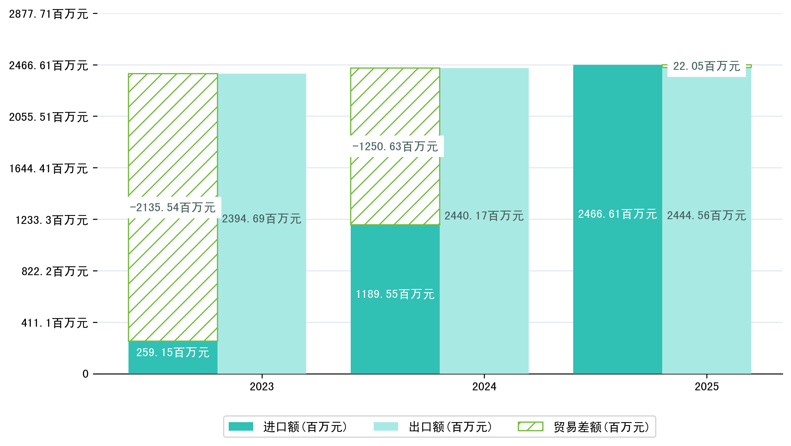 以美元计,2025年1-10月晋中市贸易差额为325,3171万美元(贸易逆差),相比上年同期减少了1,7914,4506万美元,同比减少-101.85%。