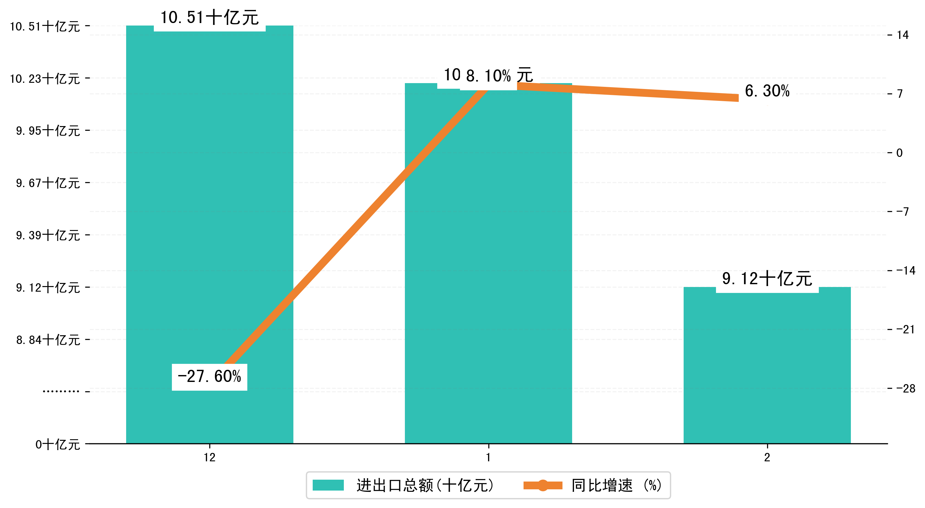 以人民币计,2024年2月昆明市贸易差额为37,0851,3095万元(贸易逆差),相比上月增加了9,0584,2339万元,即1,2844,0306万美元;相比上年同期增加了10,2367,8997万元,同比增加-21.63%。