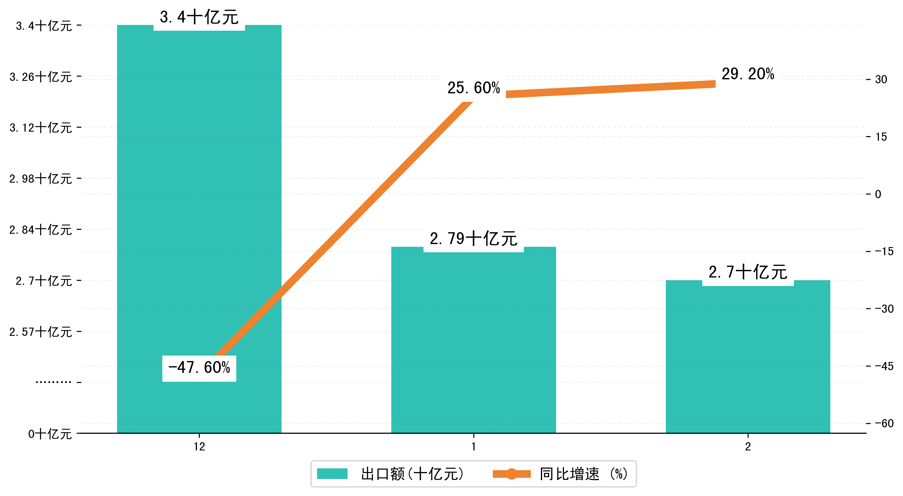 以人民币计,2024年1-2月昆明市出口额为54,9821.3461万元,相比上年同期增加了12,4329.5045万元,同比增加了29.20%。
