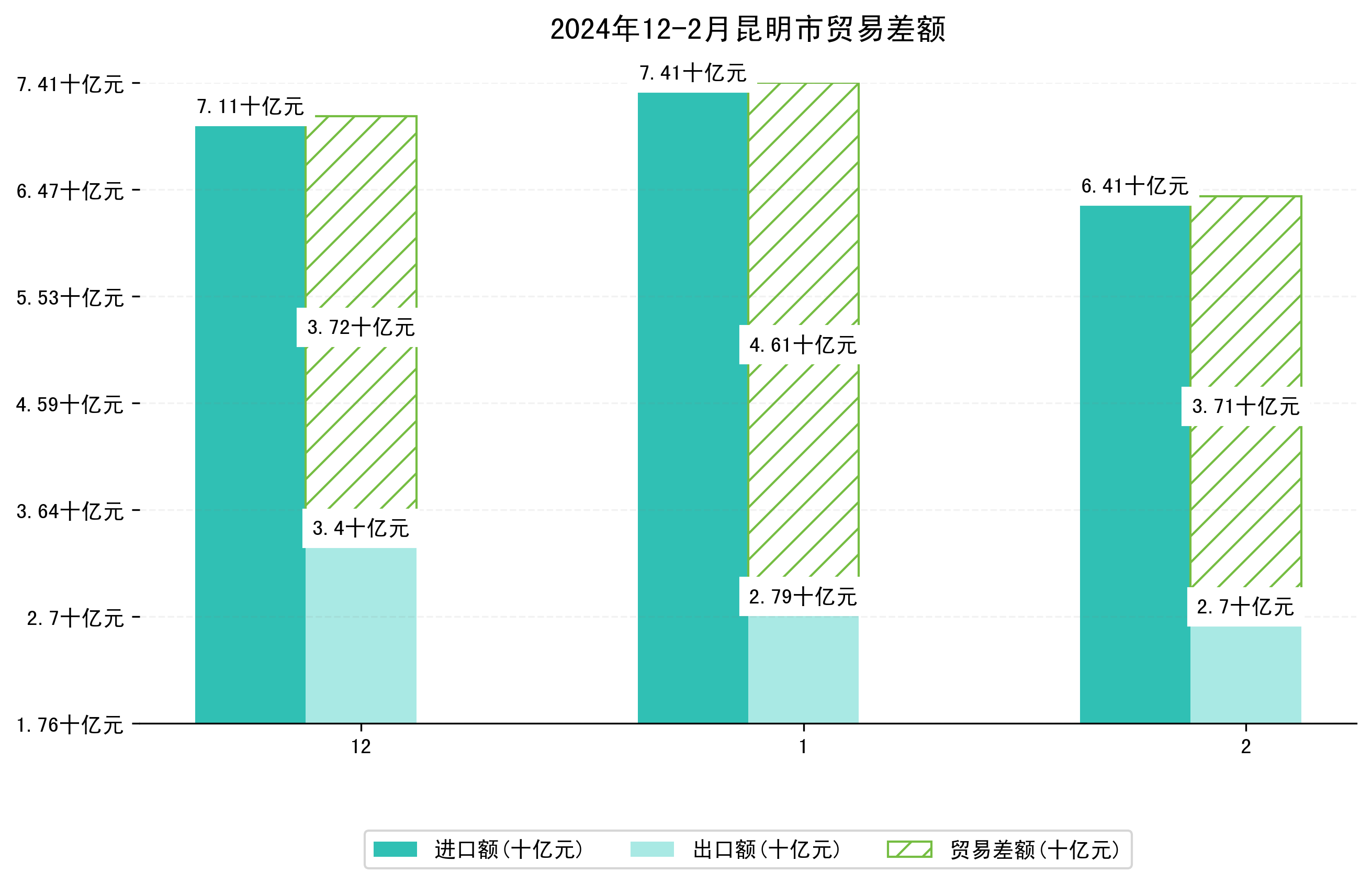2024年2月昆明市进出口总额及进出口差额统计分析