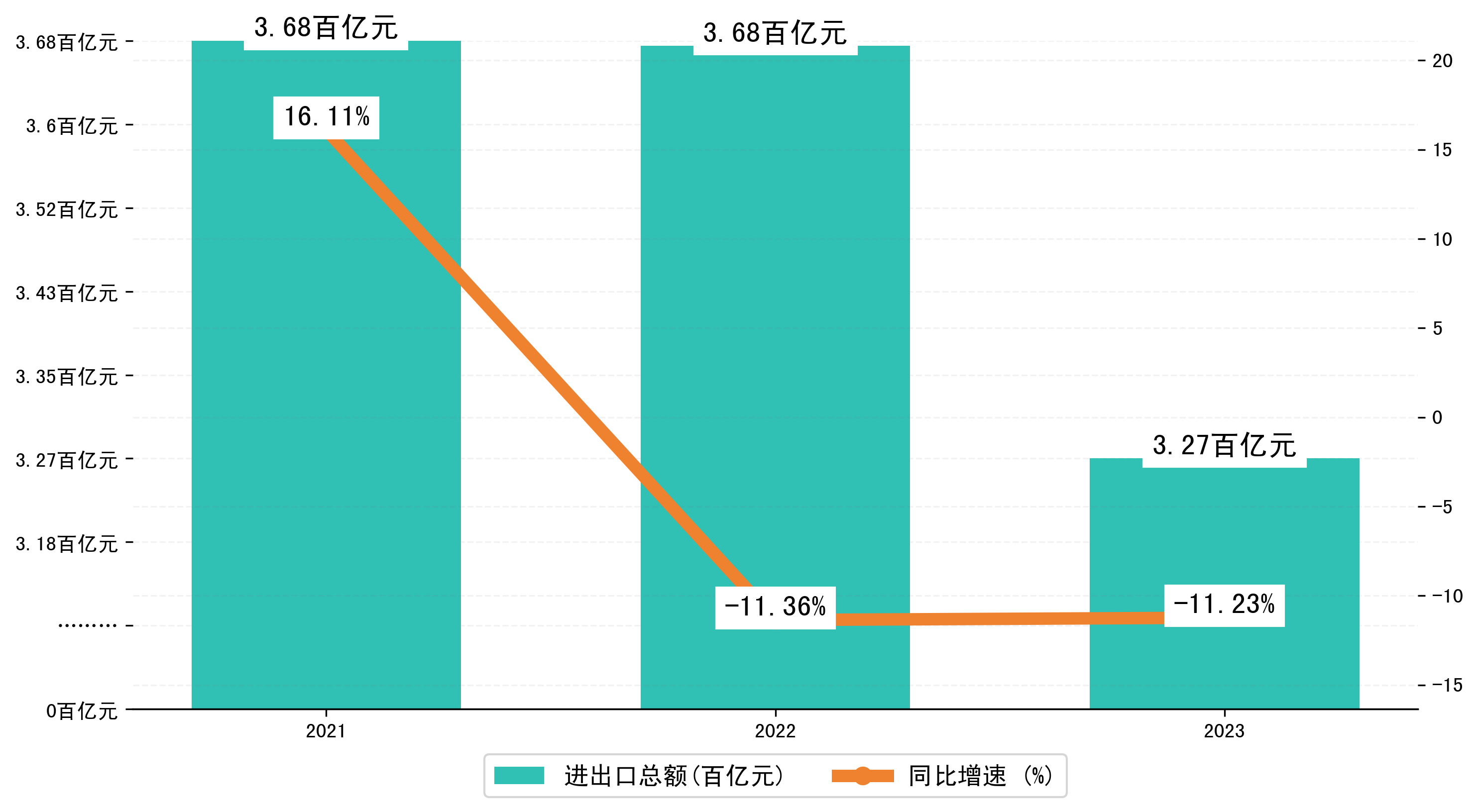 以人民币计,2023年1-9月廊坊市进出口总额为326,6259.8202万元,相比上年同期减少了41,3409.7862万元,同比减少了-11.00%。